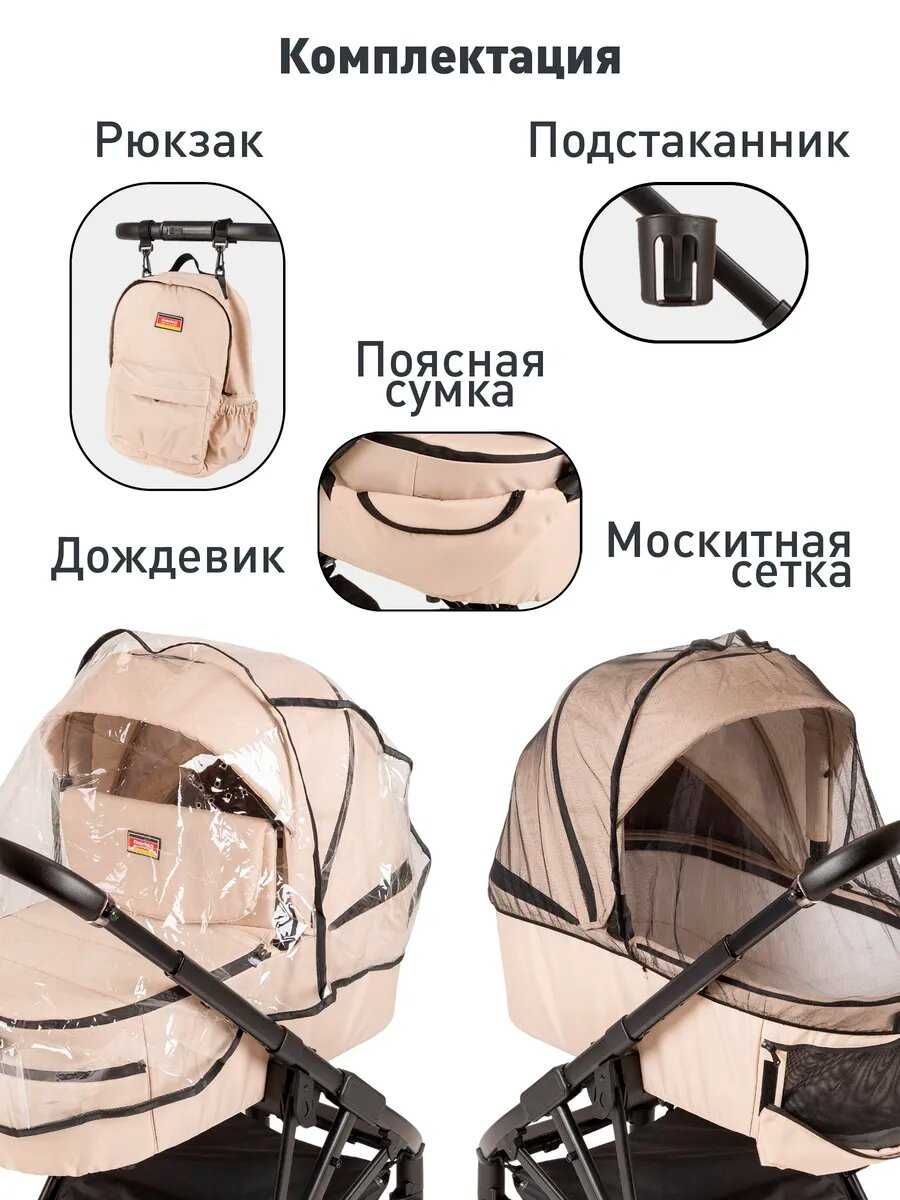 антимоскитная сетка, бампер, держатель для бутылочки, дождевик, капюшон, матрас, подстаканник, рюкзак, солнцезащитный козырек, сумка