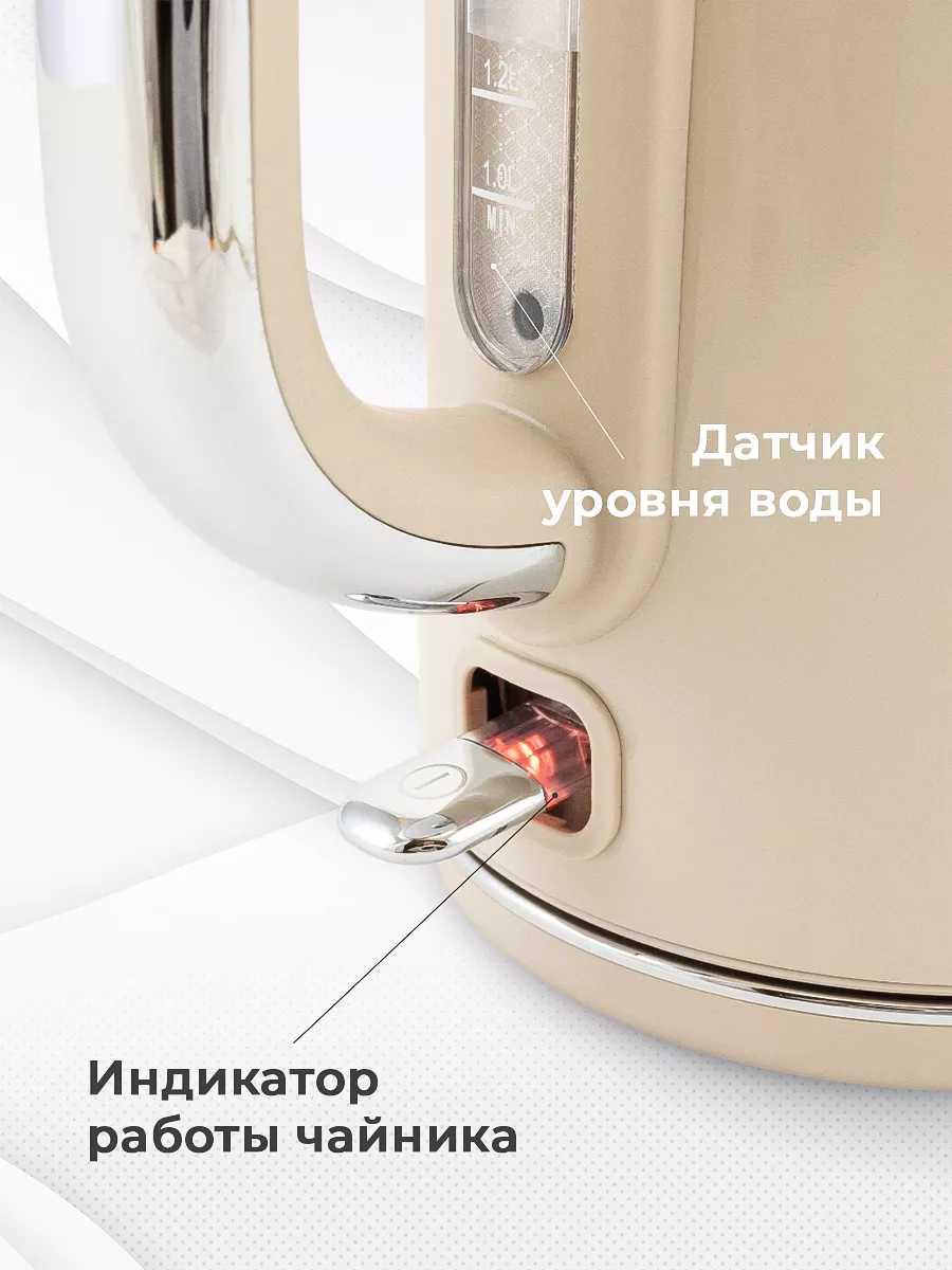 | Особенности : | бесшумное закипание, двойные стенки, индикатор уровня воды, терморисунок |