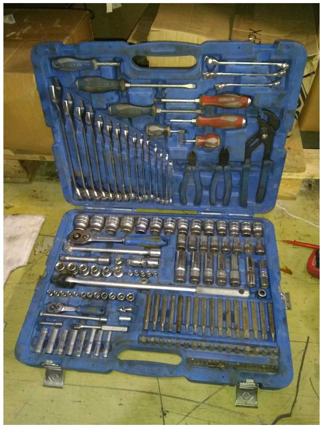 Купил, чтобы возить в багажнике вместо разных коробок/свёртков с инструментами. В результате обалдел, когда вживую его увидел и поднял. В нём есть всё. И есть то, что мне пока не встречалось (Е-головки). Долго думал и решил себе заказать другой, а этот продать. )) Просто он правда большой и, ну вот правда, он точно отличное решение для сервиса.