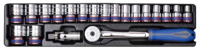 Головки торцевые подробно : | удлинитель 1/2": 55 125 250 мм, вороток с шарниром 1/2": 450 мм, вороток т-образный 1/2": 300 мм, свечная 1/2": 20.8 мм, 1/2": 10 11 12 13 14 15 16 17 18 19 20 21 22 23 24 27 30 32 мм, трещетка 1/2": 72 зуба, карданный шарнир 1/2" |