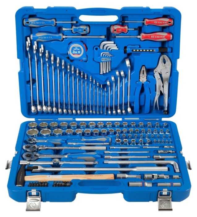 Инструменты в комплекте : | вороток для головок, динамометрический ключ, ключи гаечные, ключи имбусовые (шестигранные), ключи торцевые, молоток, отвёртки, отвёртки для точных работ, пассатижи, плоскогубцы, разрезные ключи-насадки, рукоять для головок, трещотка |