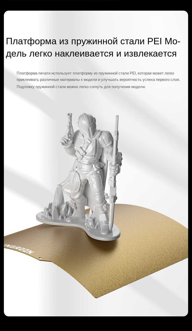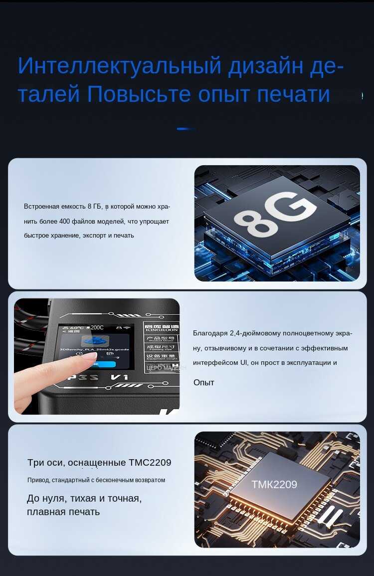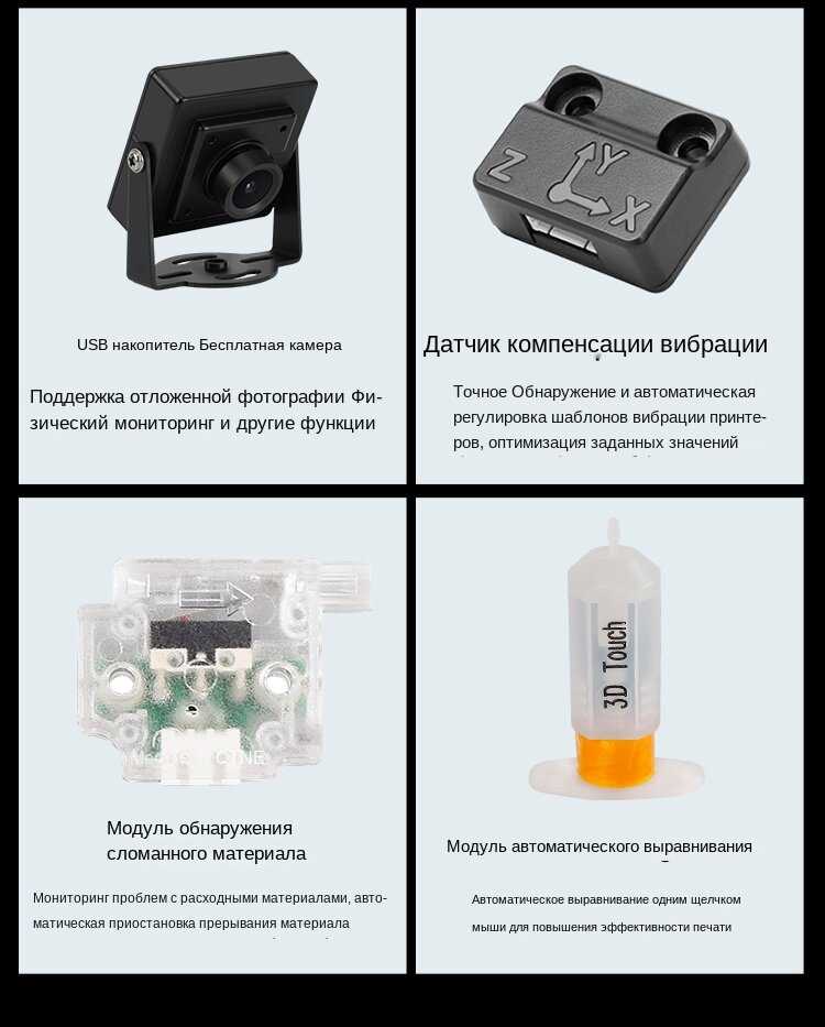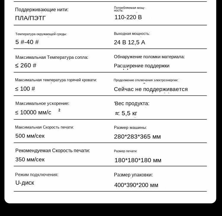 - - Описание не соответствует действительности. Нет и половина плюшек, что указано в описании. Никаких тебе автовыравнивания стола, датчиков филамента, Wi-Fi... За последнее особенно обидно. При маленьком экране нет в комплекте стилуса. Колеса кривые, биение на оси-Z, их сразу под замену. Меню удобное, но очень ограничено по функциям, только самые необходимые и минимальные. Хотенд не самый удобный, просто есть и все. Нет держателя филамента в директе или фиксатора ПТФ трубки, просто отверстие под резьбу. Стол без какого либо утеплителя.