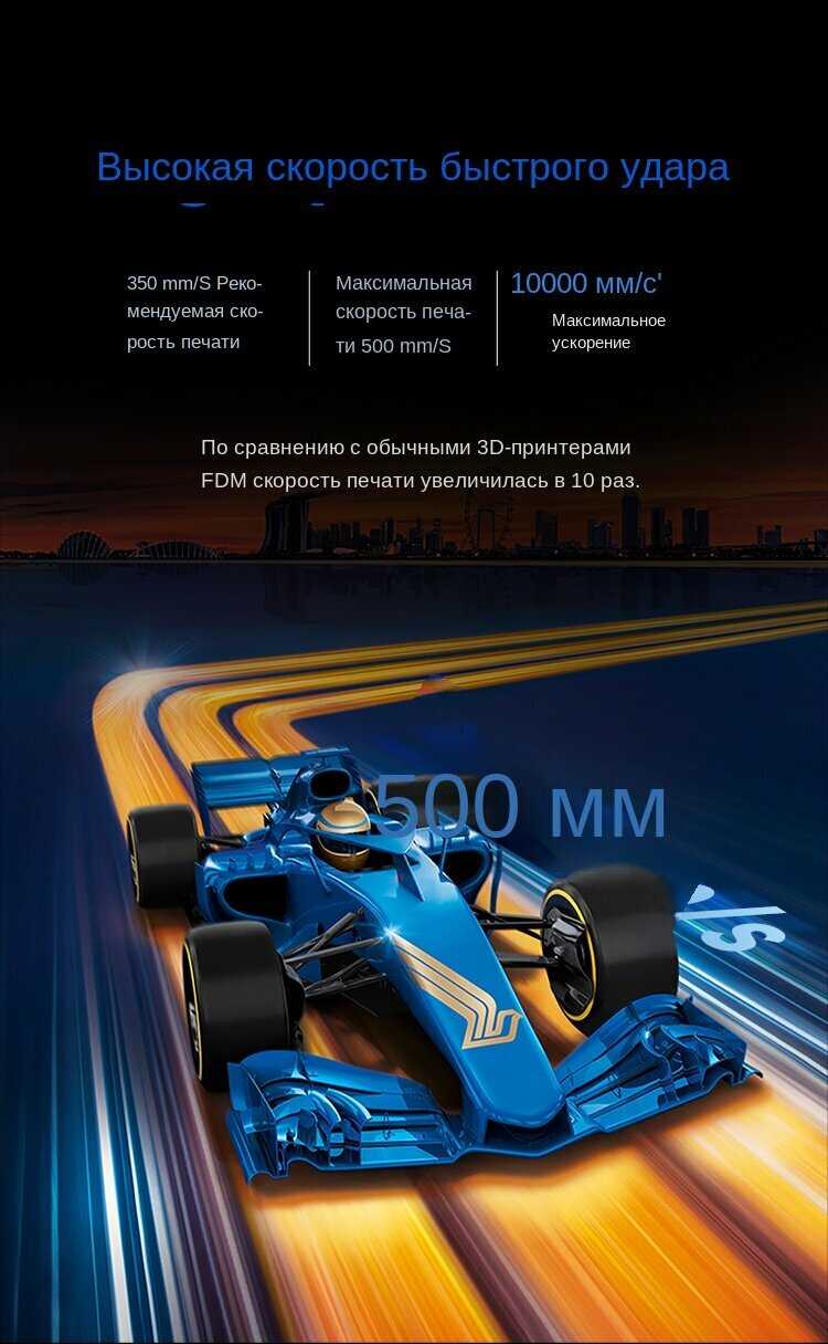 Скорость печати (скорость экструдера) : | 500 мм/сек |