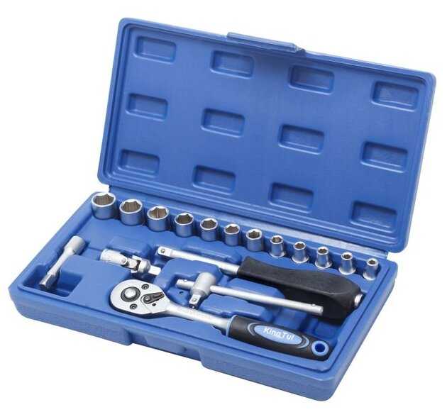 Инструменты в комплекте : | вороток для головок, ключи имбусовые (шестигранные), трещотка |