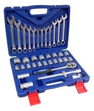 Инструменты в комплекте : | вороток для головок, ключи гаечные, ключи торцевые, трещотка |