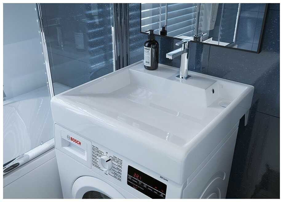 - Дополнительные резиновые ножки между раковиной и стиральной машиной усиливают устойчивость.