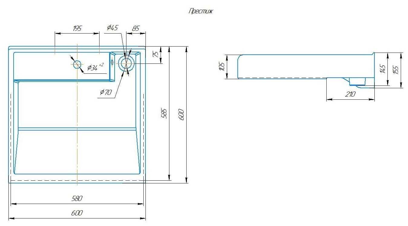 - Габариты 60×60 см (с допуском +7 мм) позволяют плотно разместить технику, экономя место в малогабаритной ванной.