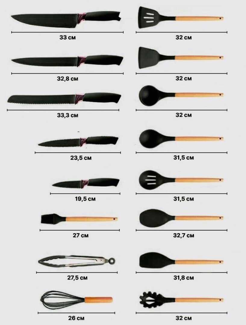 Эргономика и практическая функциональность в ежедневном использовании Эргономика изделий из набора получает неоднозначные оценки. С одной стороны, часть пользователей отмечает удобство деревянных рукояток на ножах и их влагостойкое покрытие, а также не скользящие поверхности на силиконовых аксессуарах, что обеспечивает комфортный хват. С другой стороны, многие лопатки и шумовки критикуются за излишнюю гибкость кончиков, которая существенно затрудняет процесс переворачивания пищи, например, блинов или котлет, делая его неудобным и неэффективным. Функциональный состав набора также подвергается сомнению: пользователи отмечают избыточное количество редко используемых предметов (например, специфических ножей или нескольких шумовок) при одновременном низком качестве ключевых инструментов, предлагая концепцию уменьшения количества единиц в пользу улучшения качества основных. Размеры некоторых приборов, особенно лопаток и ножей, описываются как небольшие, что наводит некоторых пользователей на сравнение набора с игрушечным, а не с профессиональным кухонным инвентарем.