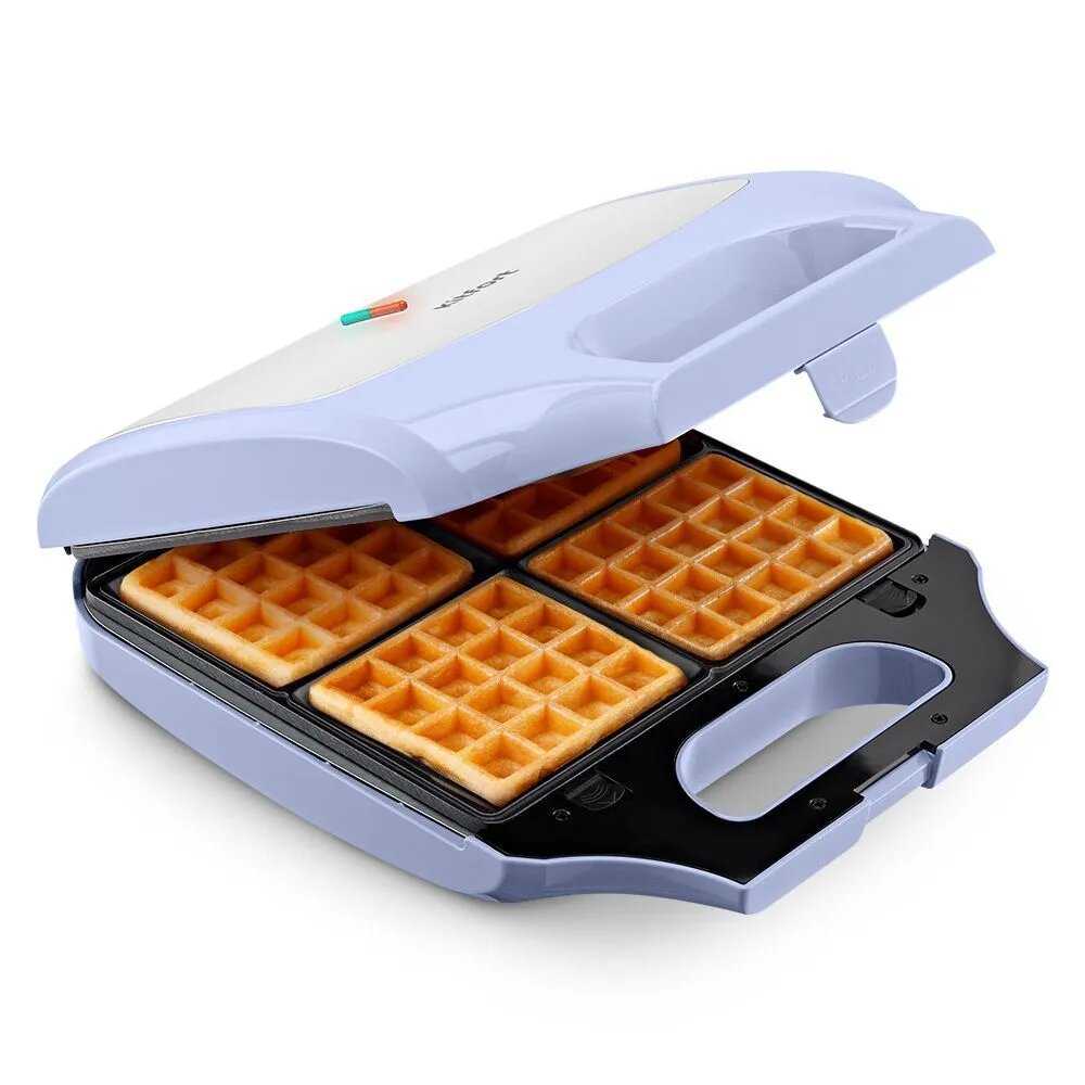 - + Раньше была простенькая вафельница мощностью 750 с несъемными панелями, так вот новая это прям космос по сравнению с той. Всё промывается легко, 4 вафли за раз, да ещё и быстрее готовит. Ничего не прилипает,можно печь без масла. Панели без изъянов, рассмотрела покрытие.