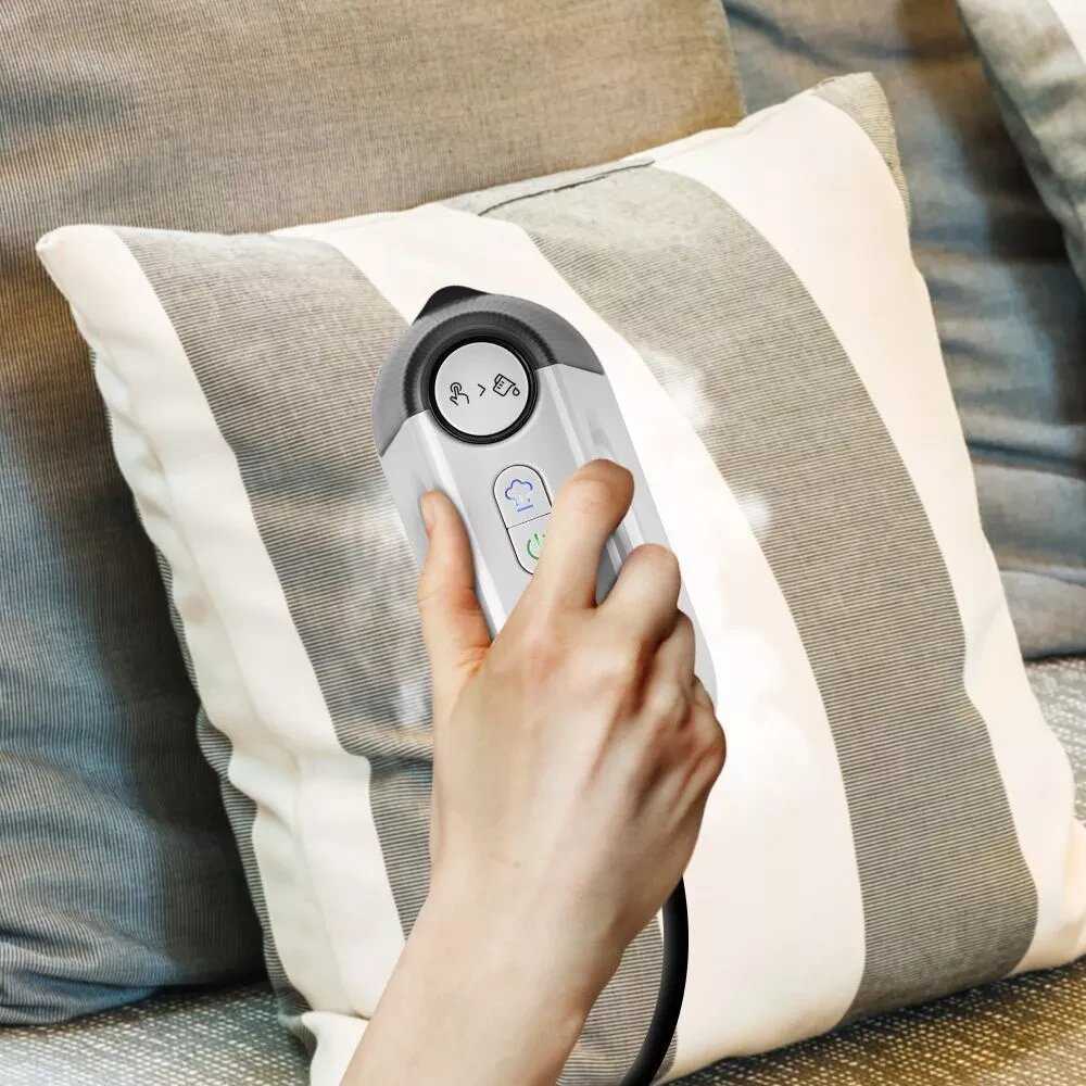 Достаточно мощный, не нужно держать кнопку, два в одном - можно использовать как утюг.