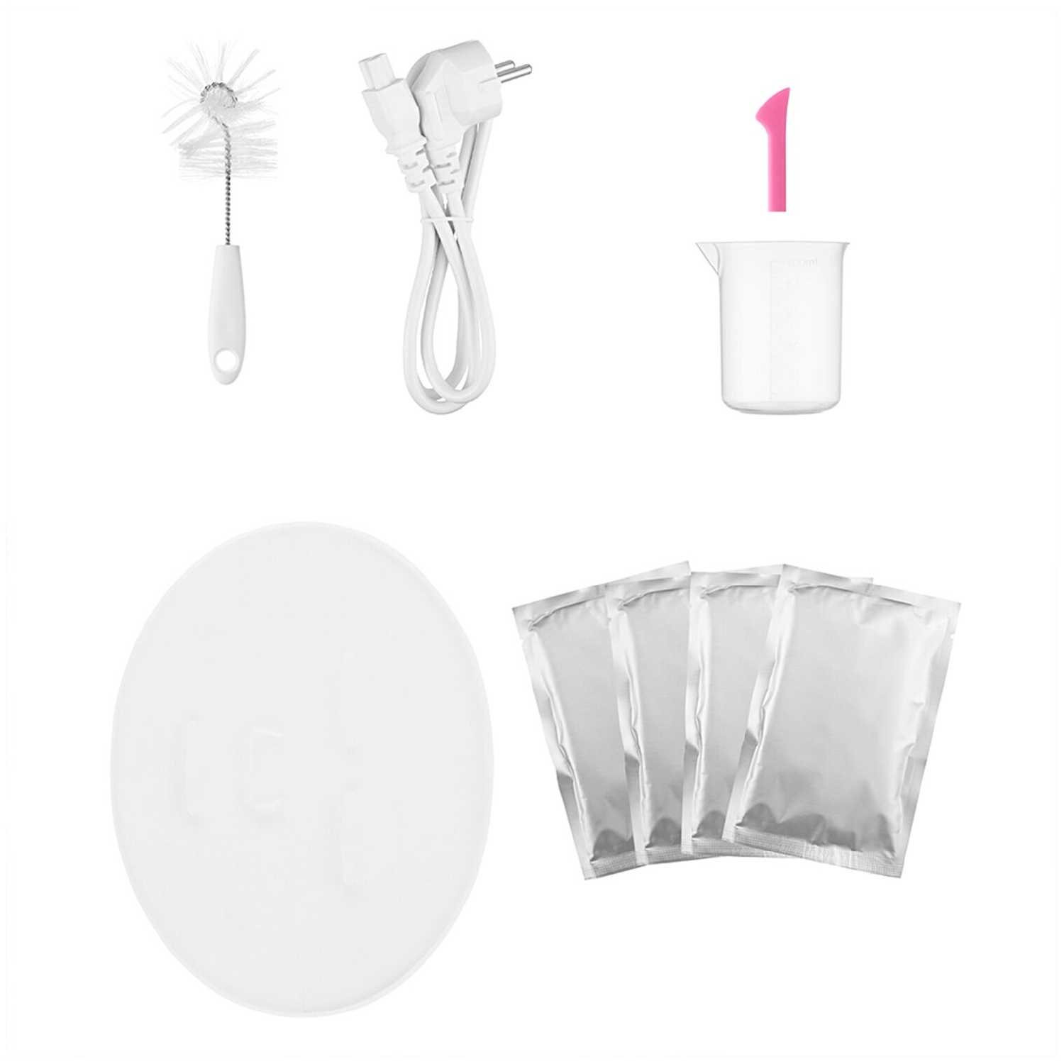 Подробная комплектация : | В комплекте к прибору идут 32 таблетки коллагена, которые впоследствии можно докупить. Также прибор КТ-3127 дополнен ершиком для очистки, мерным стаканом, специальной лопаткой и формой для маски. |