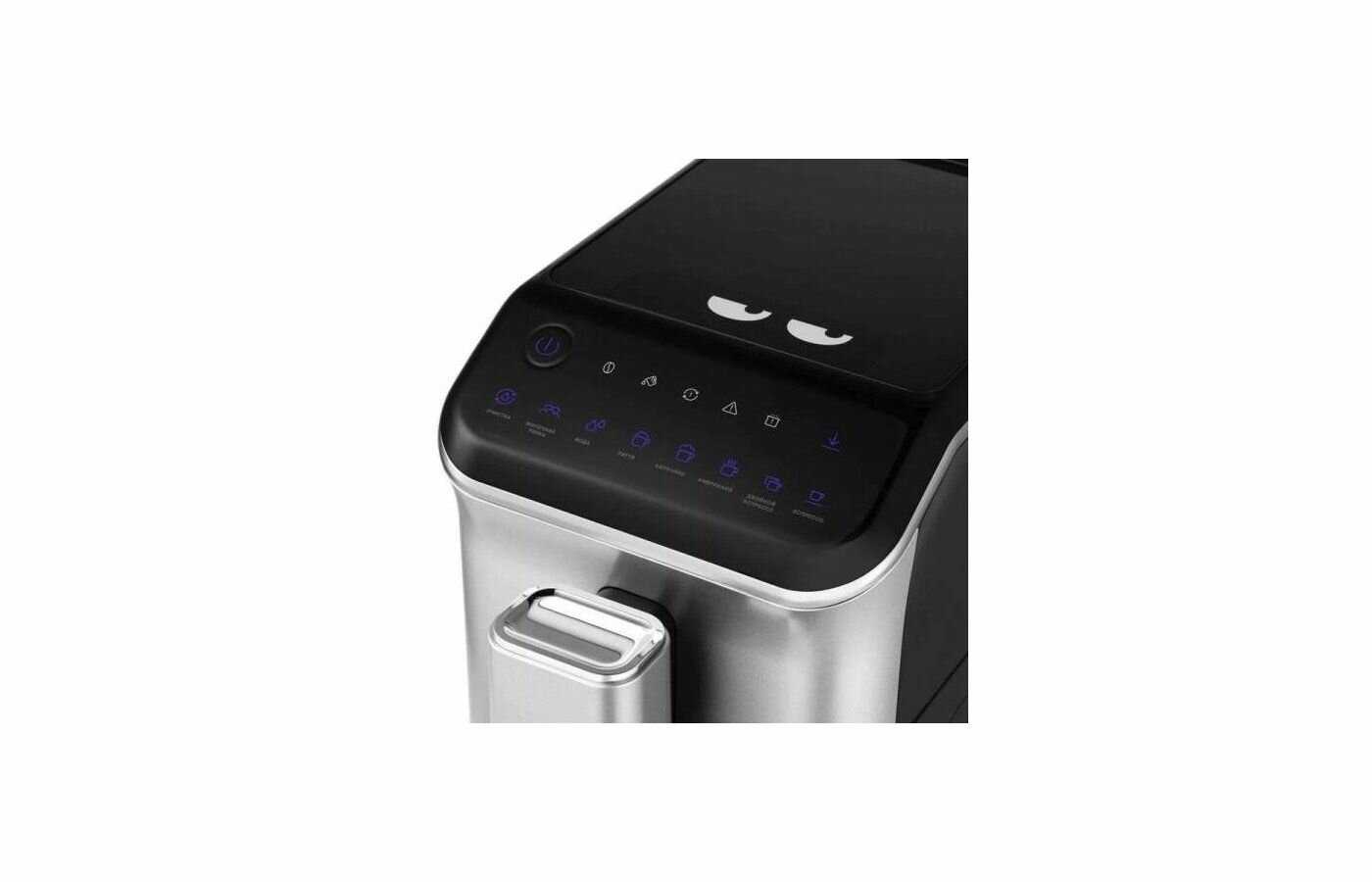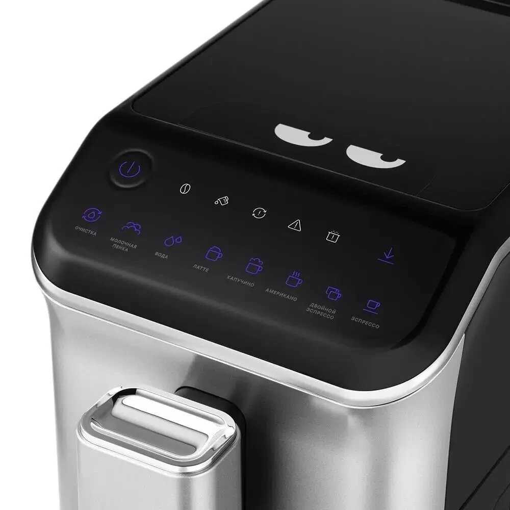 Сенсорные кнопки реагируют на лёгкие касания, а подсветка сигнализирует о выбранном режиме. Однако в слабом освещении названия напитков плохо видны — ориентируйтесь по пиктограммам. Для сброса настроек удерживайте кнопку включения 5 секунд.