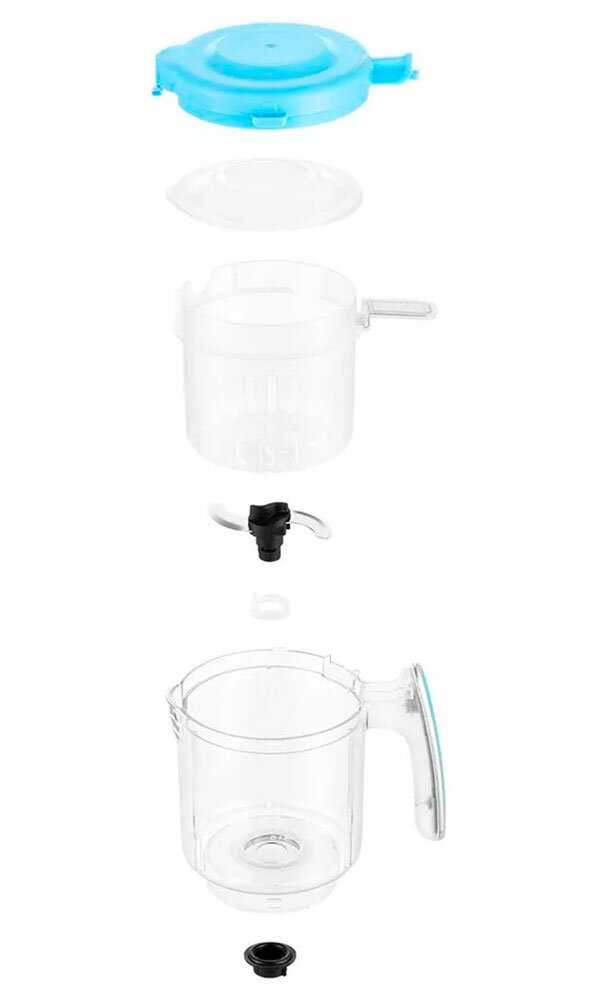 - Полная разборность всех основных компонентов (чаша, корзина, нож) облегчает процесс тщательного мытья.