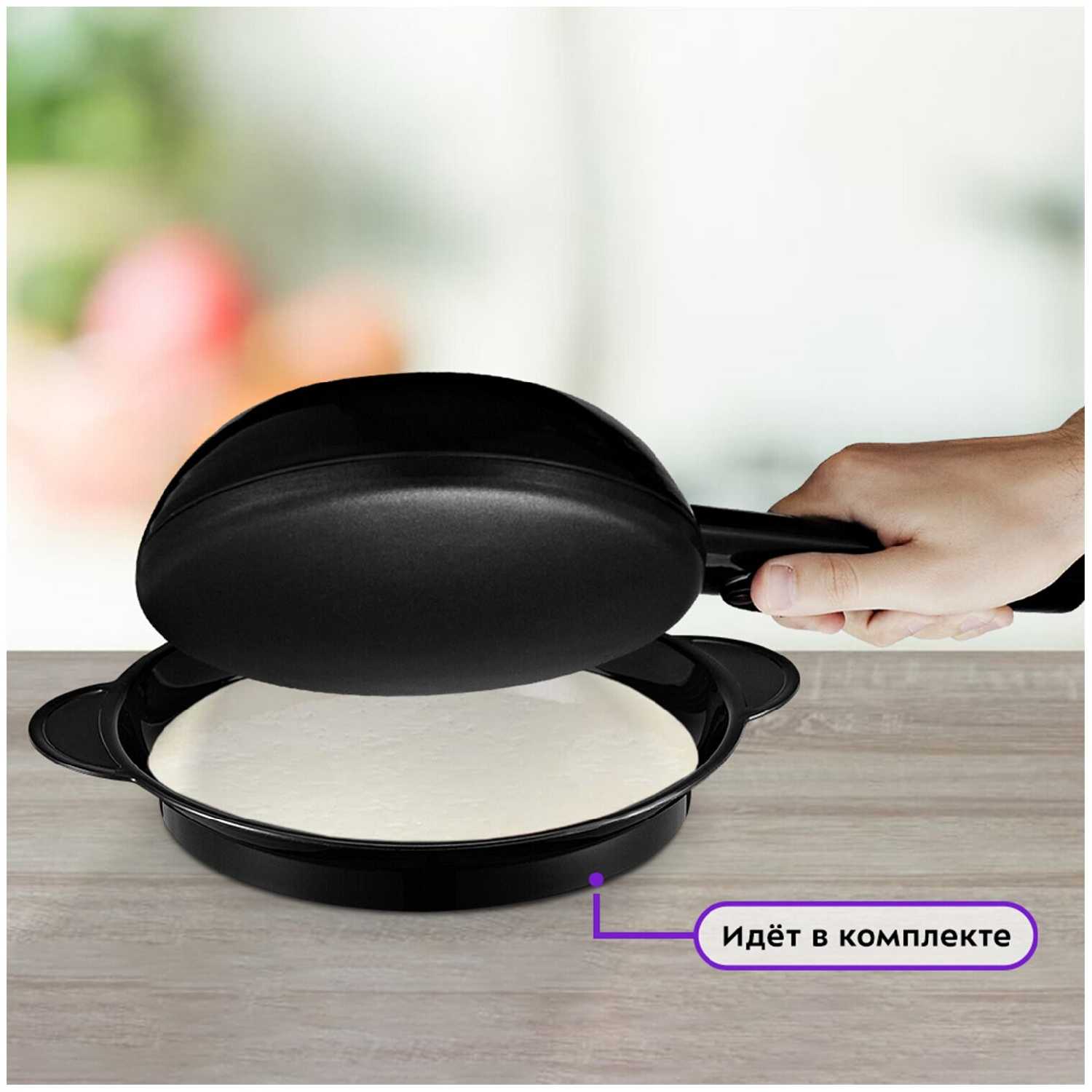 - Интуитивный процесс окунания и переворота позволяет даже детям или начинающим печь блины без навыков, с готовностью за 40-60 секунд на сторону.
