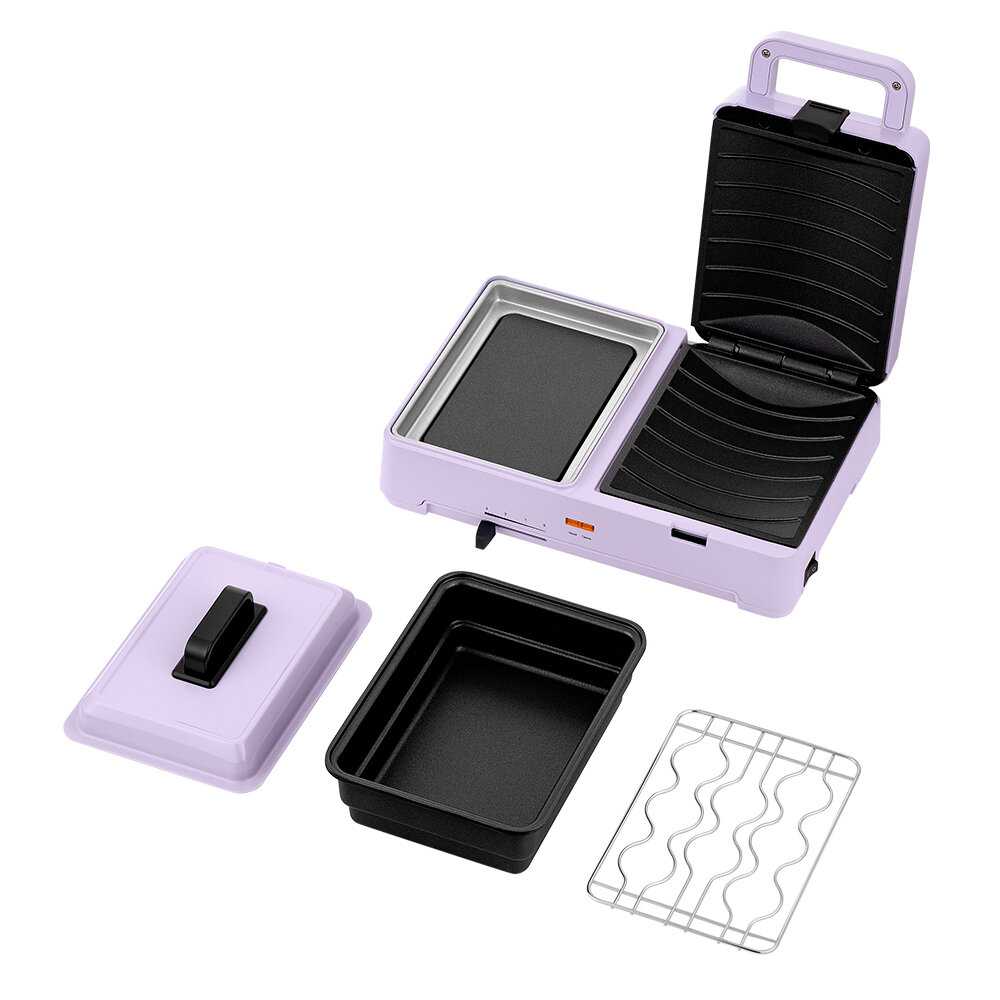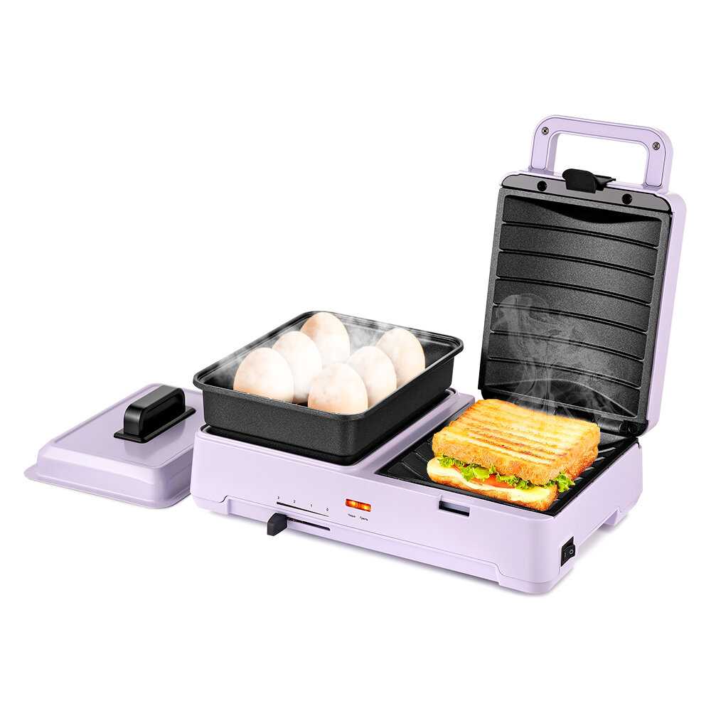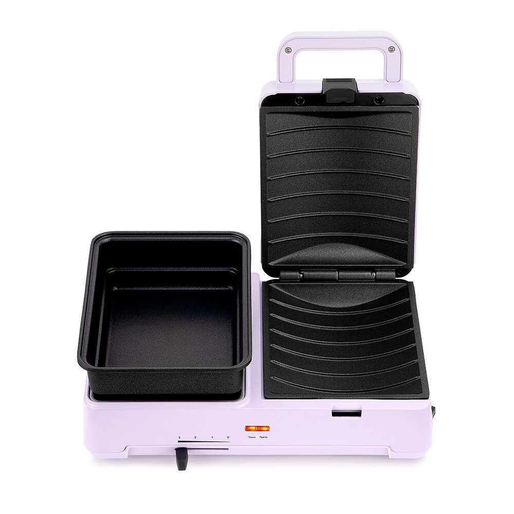 Купила недавно такую компактную нежно-лавандовую красоту. Очень удобна и проста в использовании. Одни плюсы в покупке. Большой бутерброд получается (есть выемки) и слева можно замороженные овощи приготовить(если добавить яйцо - типа шакшуки). Вариантов оказалось много, книжка с рецептами в помощь. Моется тоже легко. Пользоваться буду точно! Единственное, был небольшой запах в первый день. Но это не минус, в инструкции об этом говорилось.