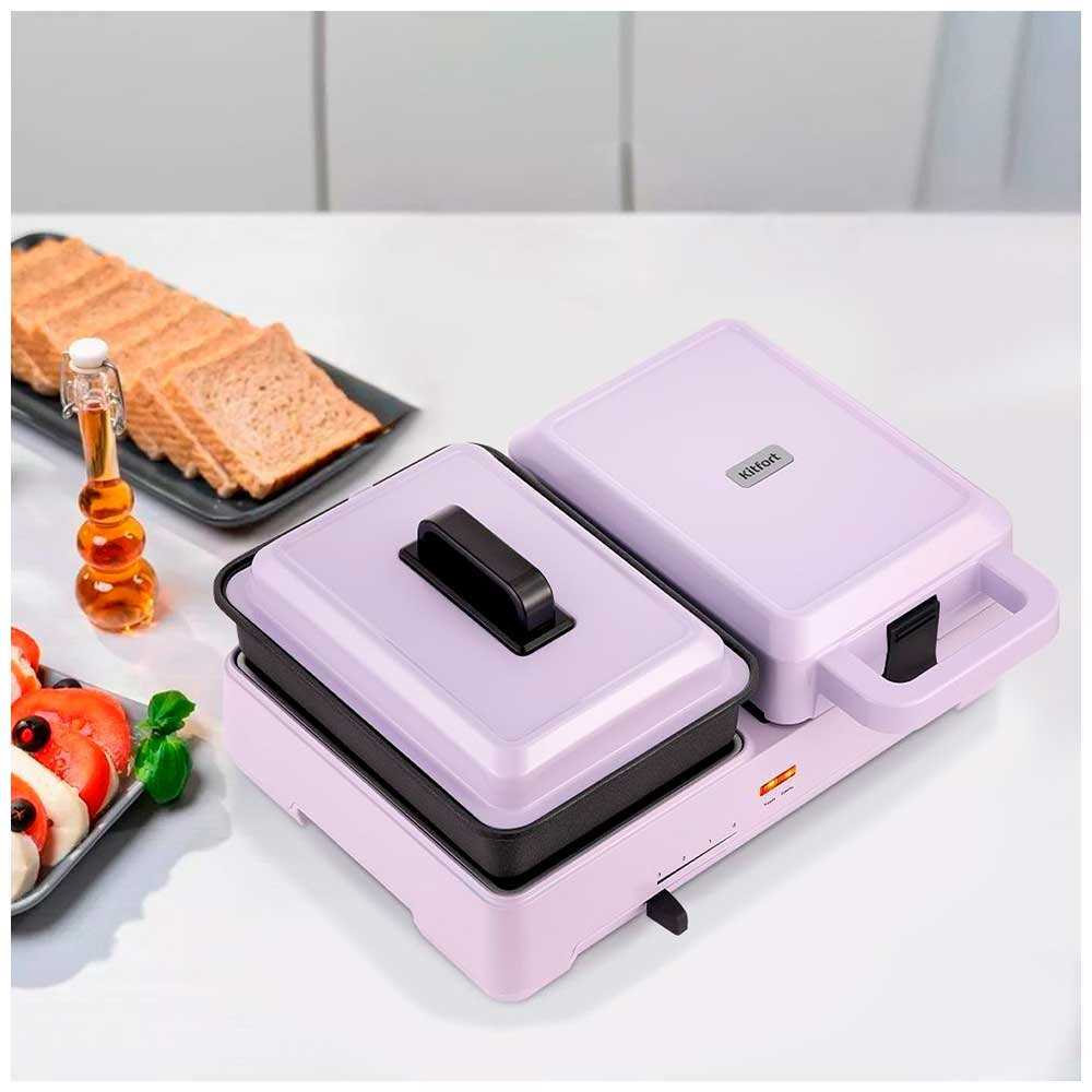Классная новинка от Kitfort! Одновременно можно готовить омлет и горячий бутерброд. Отлично получается молочная каша. Очень добротное антипригарное покрытие, легко моется. Стильно смотрится на кухне среди другой техники Kitfort. Не занимает много места. Покупкой довольна. Спасибо производителю и продовцам. Однозначно рекомендую к покупке.