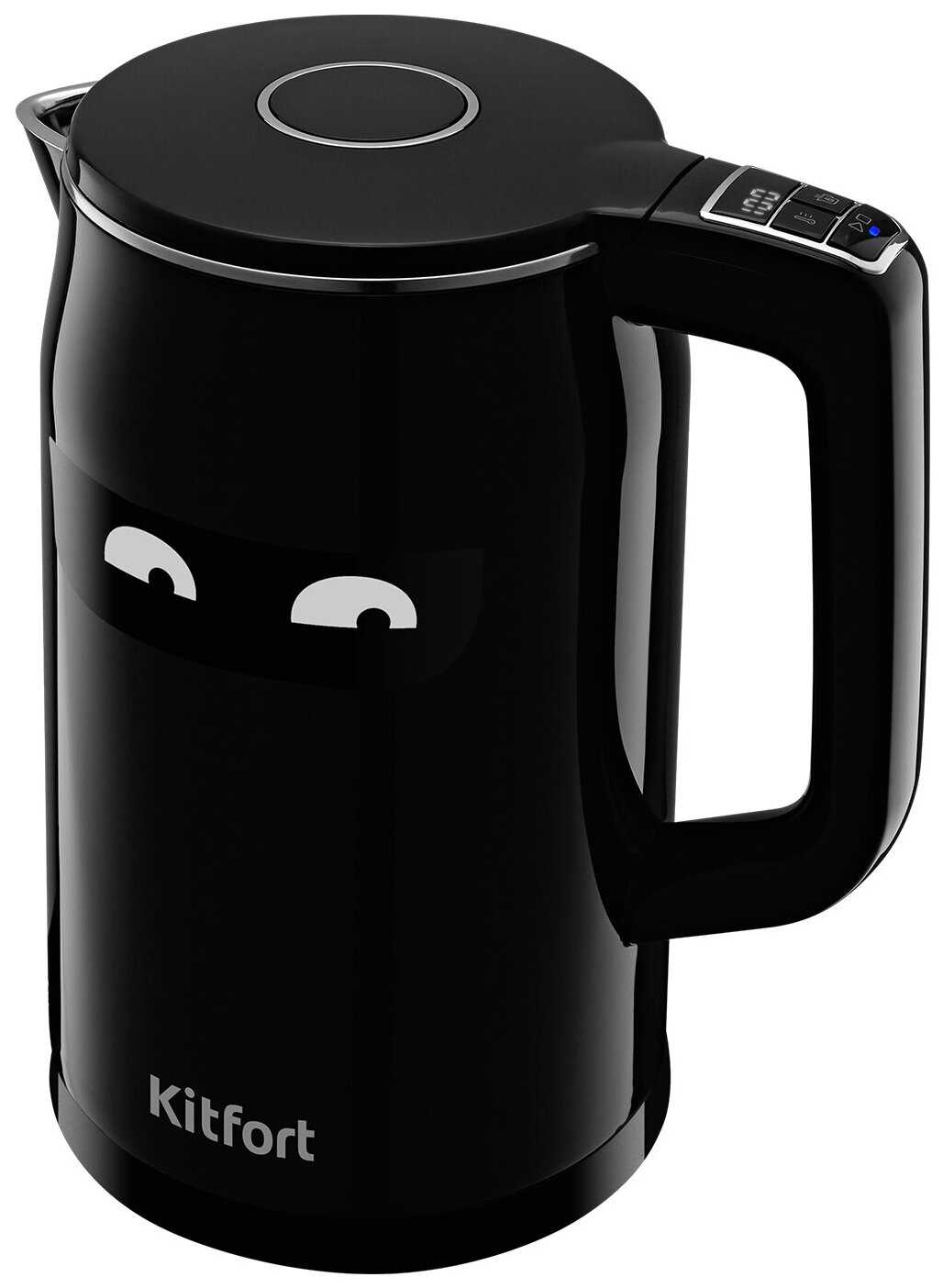 Дизайн чайника — глянцевый черный корпус с контрастным синим дисплеем — получает высокие оценки за стиль и способность органично вписаться в любой кухонный интерьер. Яркой и неоднозначной деталью являются декоративные наклейки "глазки" на корпусе. Ключевым моментом, отмеченным практически всеми пользователями, является то, что это именно наклейки, которые при желании можно легко удалить, не повредив поверхность. Это решает потенциальную проблему надоедания дизайна или его несоответствия вкусу. Для многих пользователей, особенно семей с детьми, этот элемент стал приятным и веселым бонусом. Общий вид устройства оценивается как "дорогой" и "современный". Объем в 1.7 литра считается достаточным для семьи из нескольких человек.