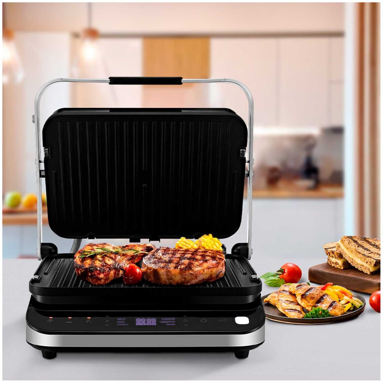Лучший по соотношению цена-качество! Удобный размер, не загромождает кухню, но в тоже время достаточно вмещает. Главный плюс, что в комплекте идут сменные панели для приготовления венских вафель!!! Удобно мыть как панели, так и лоток для жира, так как всё съёмное! Можно использовать без растительного масла, отлично справляется. Приготовили шаурму, сэндвичи, сосиски. Всё понравилось!