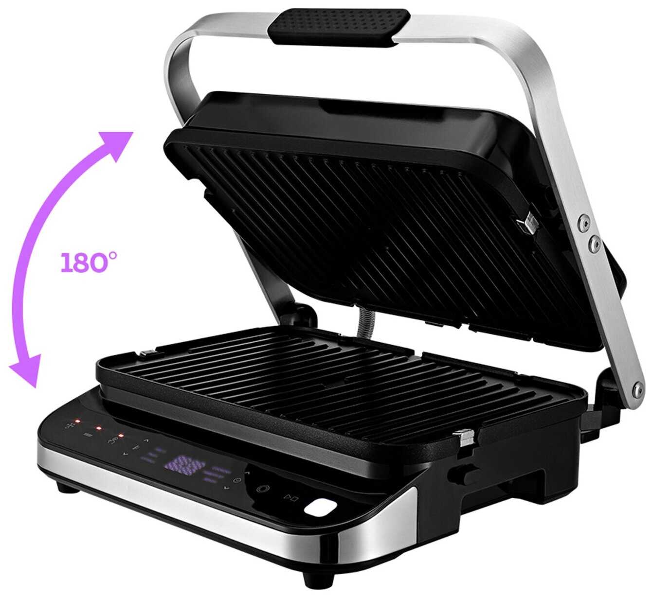 Купили первый гриль, после просмотра различных обзоров выбрали эту модель и не пожалели. При первом использовании прокалили панели как сказано в инструкции, после приступили к готовке. Мясо хорошо прожаривается до той степени, до которой Вам необходимо. Панели быстро нагреваются до необходимой температуры. Имеются: дисплей, таймер и различные режимы приготовления. В комплекте идут панели для приготовления вафель.
