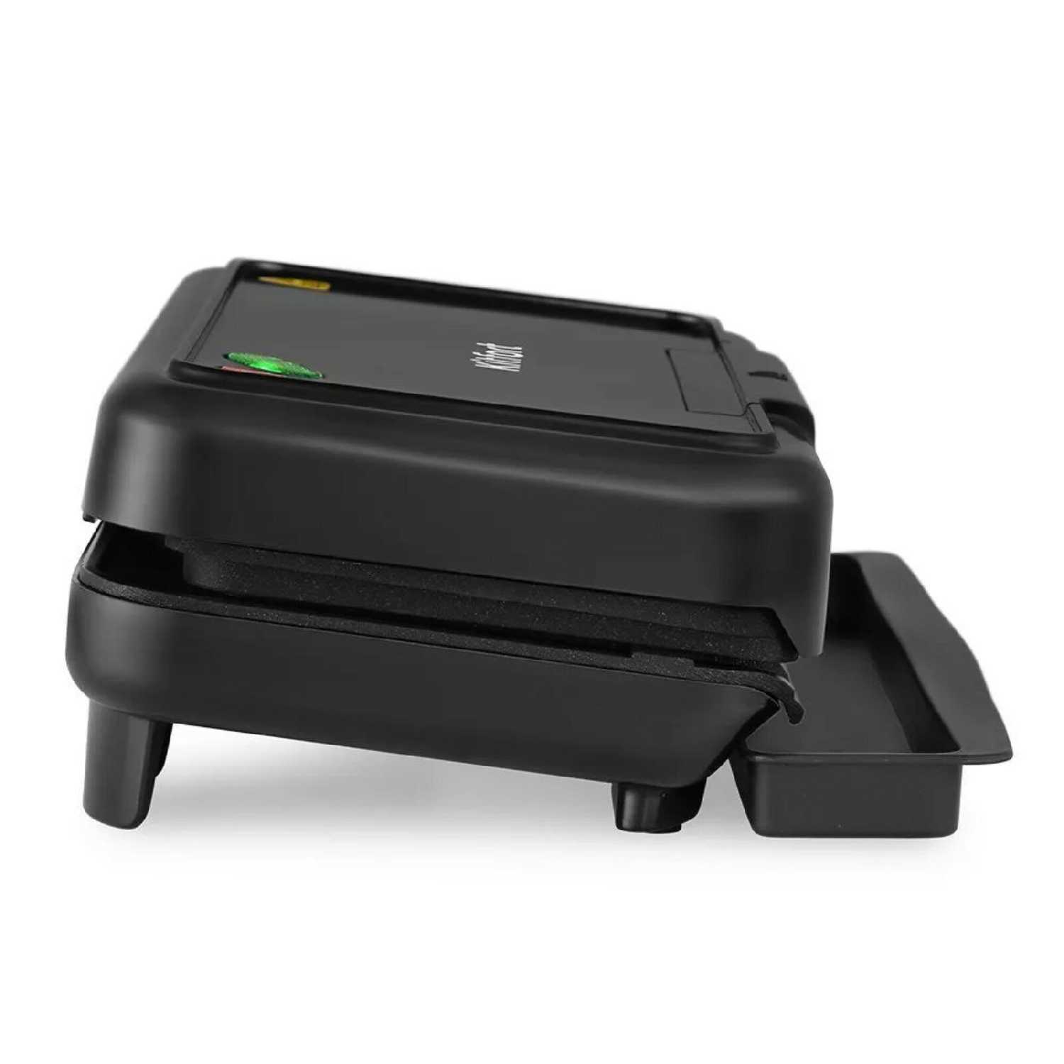 Ключевой особенностью модели является плавающая крышка с регулируемым зазором, позволяющая готовить продукты разной толщины – от тонких тостов до объемных куриных бедер. Система сбора жира в съёмный поддон эффективно отводит излишки, хотя отмечаются незначительные брызги по бокам. Компактные габариты (рассчитан на 1-2 порции) делают его идеальным для малогабаритных кухонь, но ограничивают использование для больших компаний. Серьезным недостатком пользователи называют отсутствие кнопки включения – прибор приходится отключать напрямую от розетки, а чрезмерно короткий сетевой шнур (менее 1 м) создает неудобства при размещении.