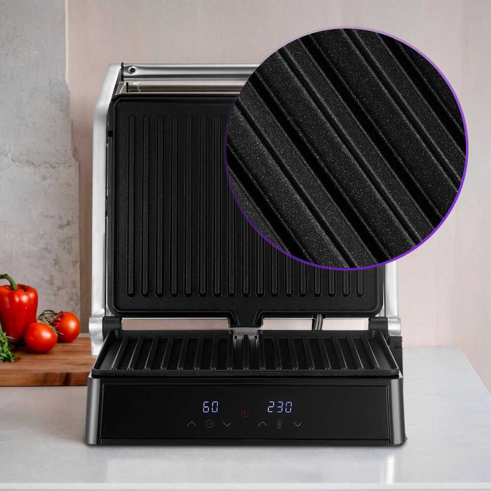 Отдельный плюс — антипригарное покрытие: ничего не прилипает, а мыть гриль после использования занимает меньше минуты. Компактный, стильно выглядит и не занимает много места на столе.