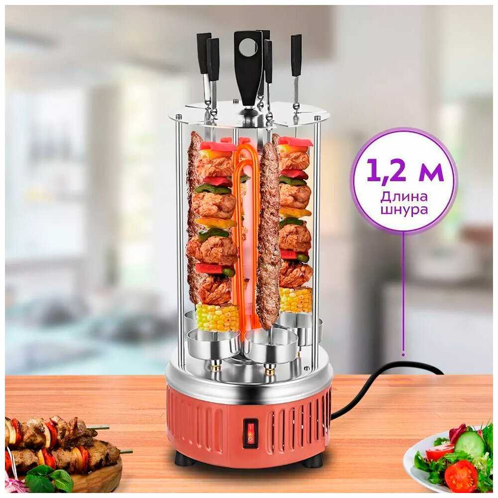 Простота использования: вставил шампуры, включил — и можно заниматься другими делами.