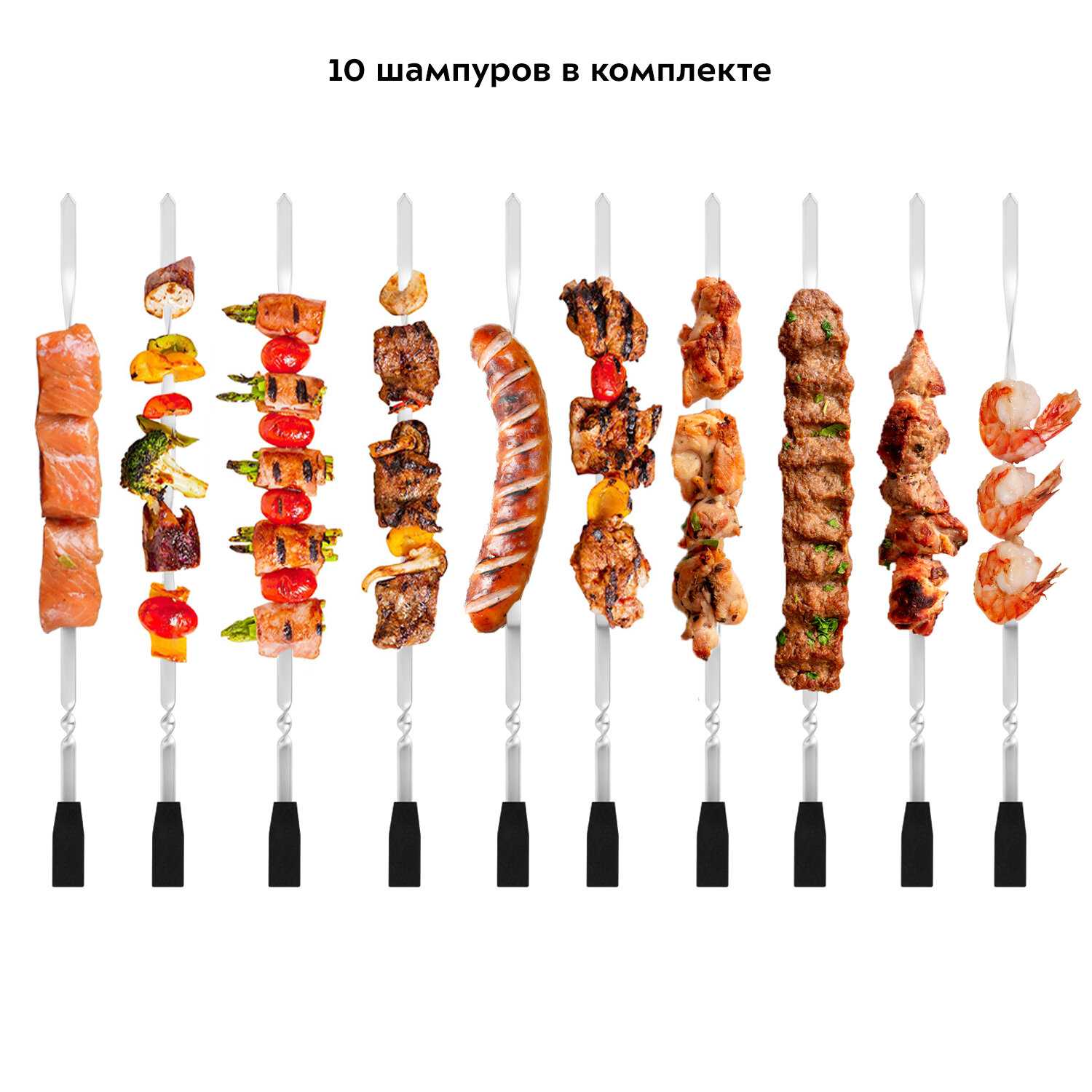 - + В комплекте 10 шампуров, простота в готовке