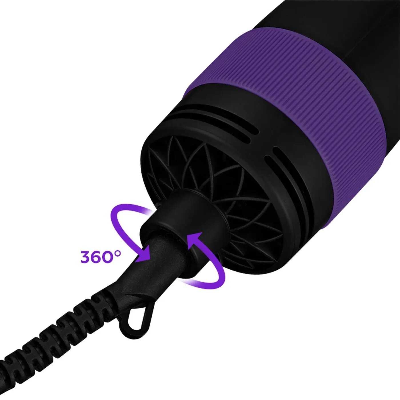 Фен-щетка отличается легким весом и компактными габаритами, что снижает усталость рук при продолжительной укладке. Складная ручка упрощает хранение и транспортировку, а вращающийся шнур на 360° предотвращает запутывание. Эргономичная форма обеспечивает удобный хват, но крупные насадки могут смещать баланс, вызывая дискомфорт при использовании более 5–10 минут подряд. -