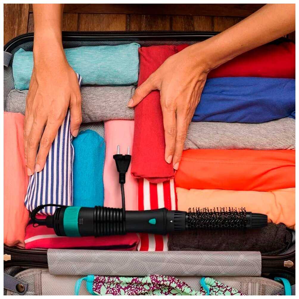 Благодаря складной ручке и компактным размерам фен легко помещается в дорожную сумку или рюкзак. Мощности 1100 Вт достаточно для быстрой укладки в поездках, а легкий вес (менее 1 кг) не утяжеляет багаж. Однако отсутствие чехла для насадок в комплекте требует дополнительной упаковки, чтобы избежать повреждения щетинок. -