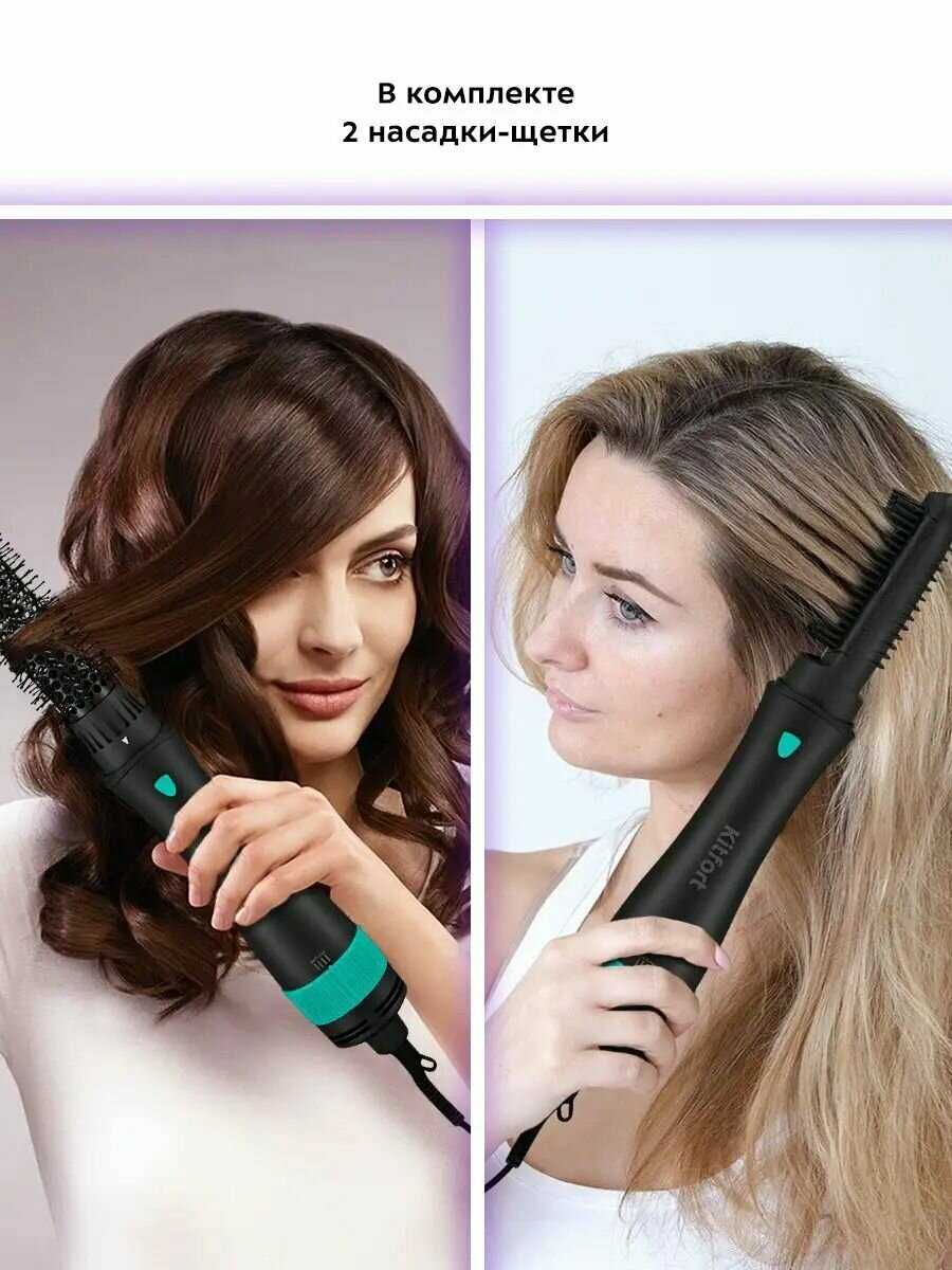 Приобрела фен-щетку дочери на 8 марта, очень остались довольны данным феном. Удобно сушит волосы с большой расчёской, отлично выпрямляет. Но так же можно делать локоны. Лёгкий, удобно лежит в руке, съемные насадки. Защита от перегиба и вращение шнура на 360.