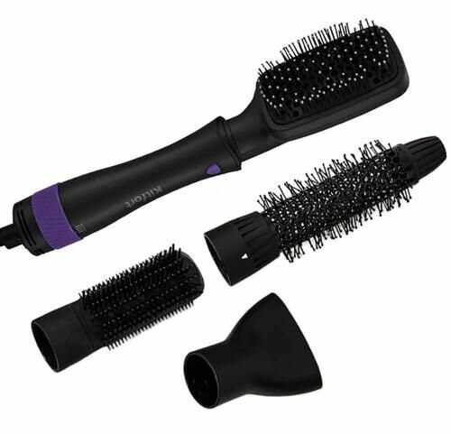 - + Отличная вещь))) Сушить и укладывать волосы - одно удовольствие! Насадки очень оригинальные, особенно массажная щетка, круглая очень здорово подкручивает и придает объем.