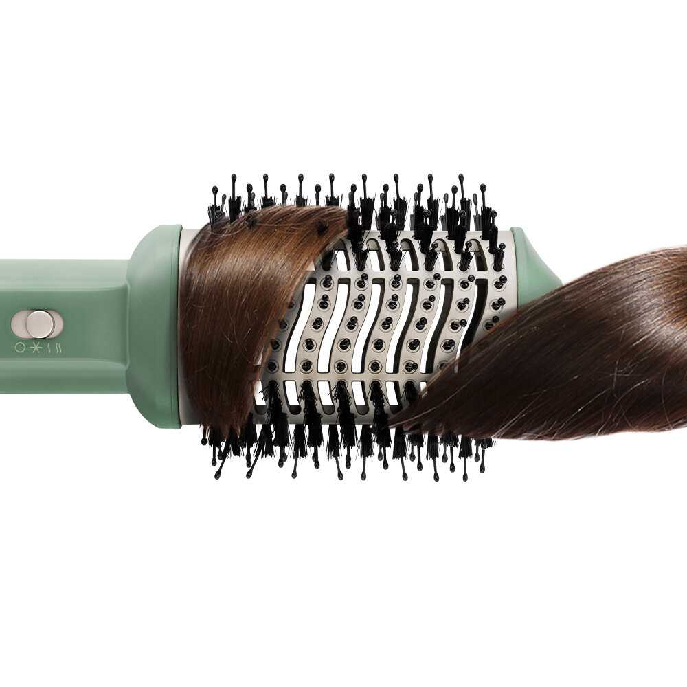 - Подкручивает кончики и формирует волны или локоны, особенно на овальной форме щетки (удобно для густых и вьющихся волос).