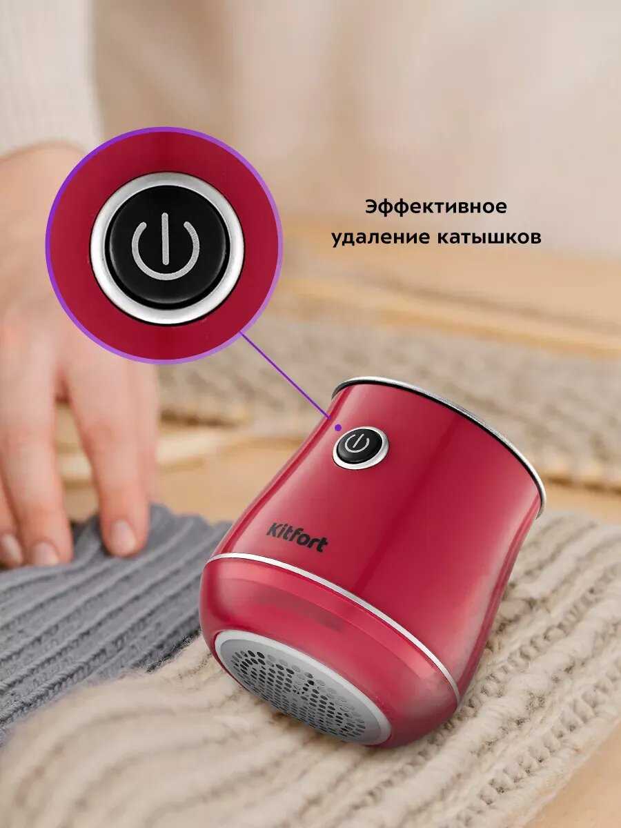 - + Катышкоудалитель Kitfort — это просто спасение для одежды. Он моментально возвращает вещам ухоженный и аккуратный вид. Прибор очень легкий и удобно лежит в руке. Работает невероятно тихо по сравнению с другими моделями. Однозначно рекомендую эту покупку всем, кто ценит опрятность своего гардероба.