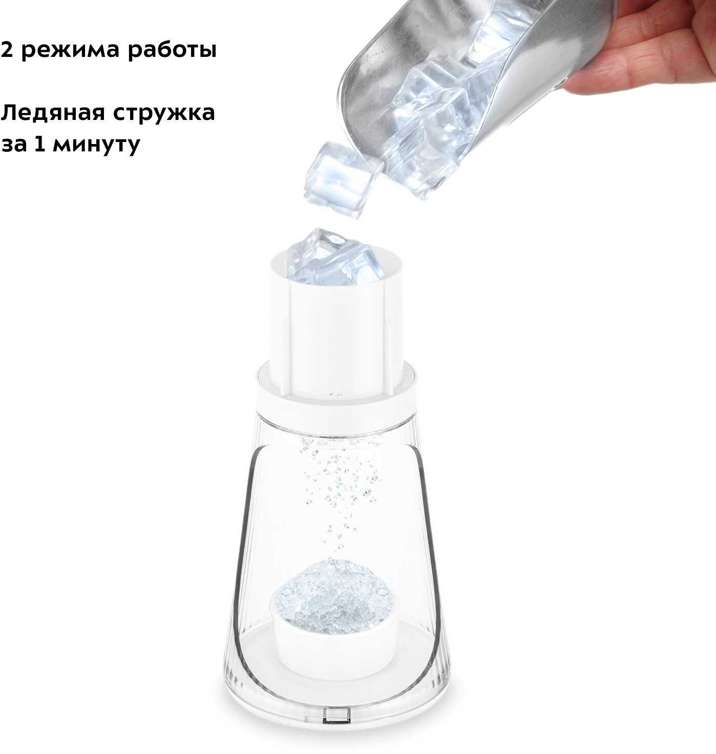 - + ✔ Мощный и эффективный – легко справляется с колотым льдом, превращая его в мелкую крошку за несколько секунд.