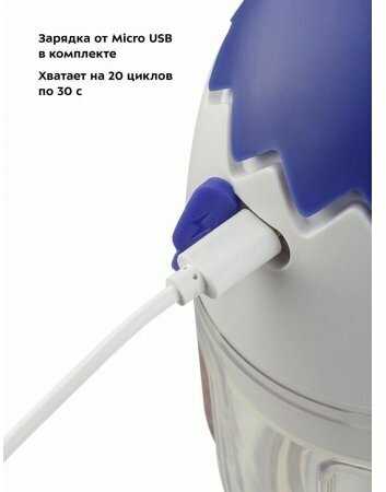 Заряда аккумулятора хватает на 10 и более циклов (например, 5-7 дней ежедневного использования). Отсутствие провода позволяет брать измельчитель на дачу или в поездки, а зарядка через USB-кабель (в комплекте) делает его независимым от розеток. -