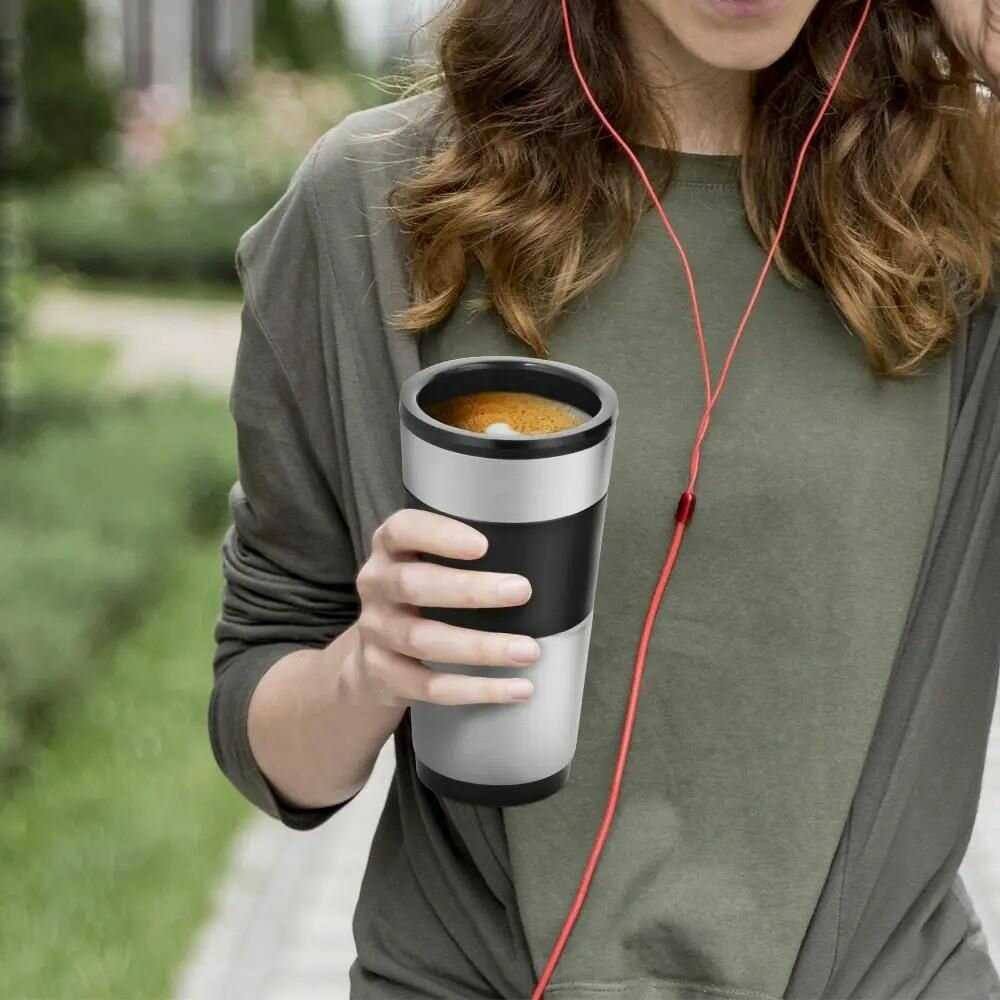 Каждое утро моего мужа начиналось с быстрорастворимового кофе. Решила подарить ему этот чудо-самовар на день рождения, чтобы утро стало вкуснее и бодрее. Муж в восторге! Кофе молит по шуму также, как наша кофемолка, при этом можно использовать как зерна, так и молотый. По итогу получается вкусные кофе, не уступающий дорогим кофемашинам. Минимальный дизайн и компактность придает особый шарм, впишется в любую кухню. Термокружка хорошо держит тепло, удобно брать с собой в машину, но муж пользуется другой, подаренной мной ранее. Советую данную кофеварка от всей души!