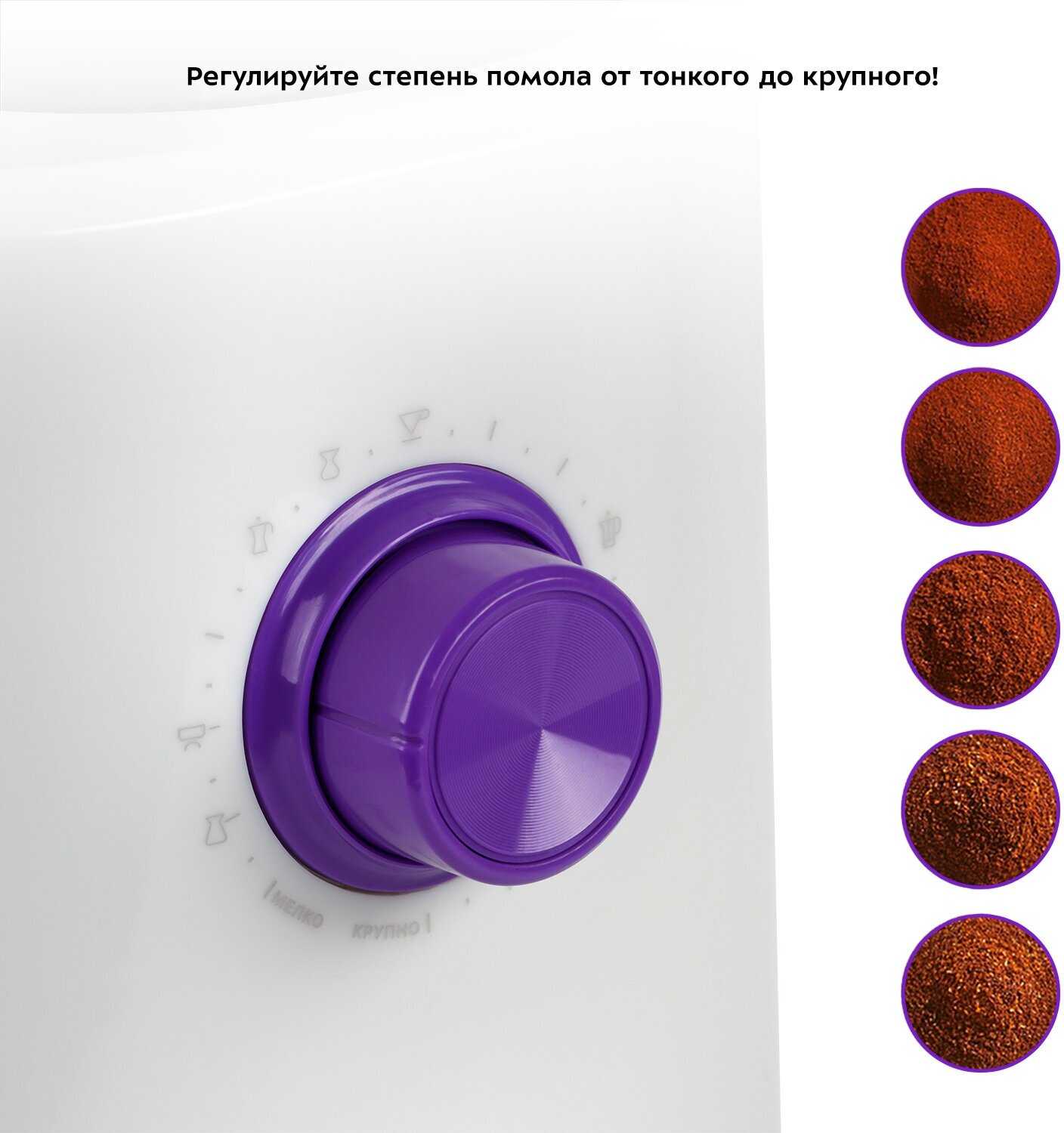 Помол крупноват и неравномерен, дешевый электростатичный тонкий маркий пластик на емкостях, при работе может отходить верхняя крышка(из за чего кофемолка выключиться) и ее нужно придерживать, как по мне коротковат провод