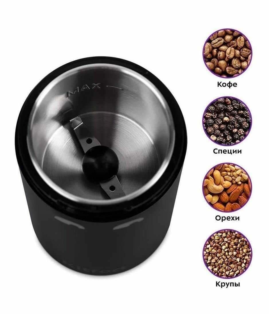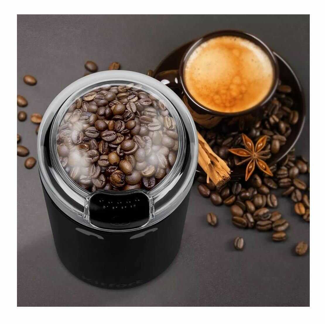Кофемолка Kitfort KT-7116 демонстрирует отличные результаты при обработке кофейных зёрен, специй, орехов, гороха и сахара. Пользователи подтверждают способность устройства превращать горох в пылеобразную массу, а овсяные хлопья — в муку за 4 секунды. Для достижения мелкого помола кофе (особенно для турки) требуется регулировка времени работы или повторный цикл, хотя сверхтонкий помол "в пыль" возможен при неполной загрузке чаши. Объёма до метки MAX достаточно для приготовления 4-5 чашек кофе за один цикл. Важно отметить, что при перегрузке (свыше 4-5 порций) устройство склонно к перегреву и требует охлаждения. Технический параметр — мощность мотора — обеспечивает высокую скорость обработки, сокращая время помола с часов (в ручных аналогах) до 20-30 секунд.