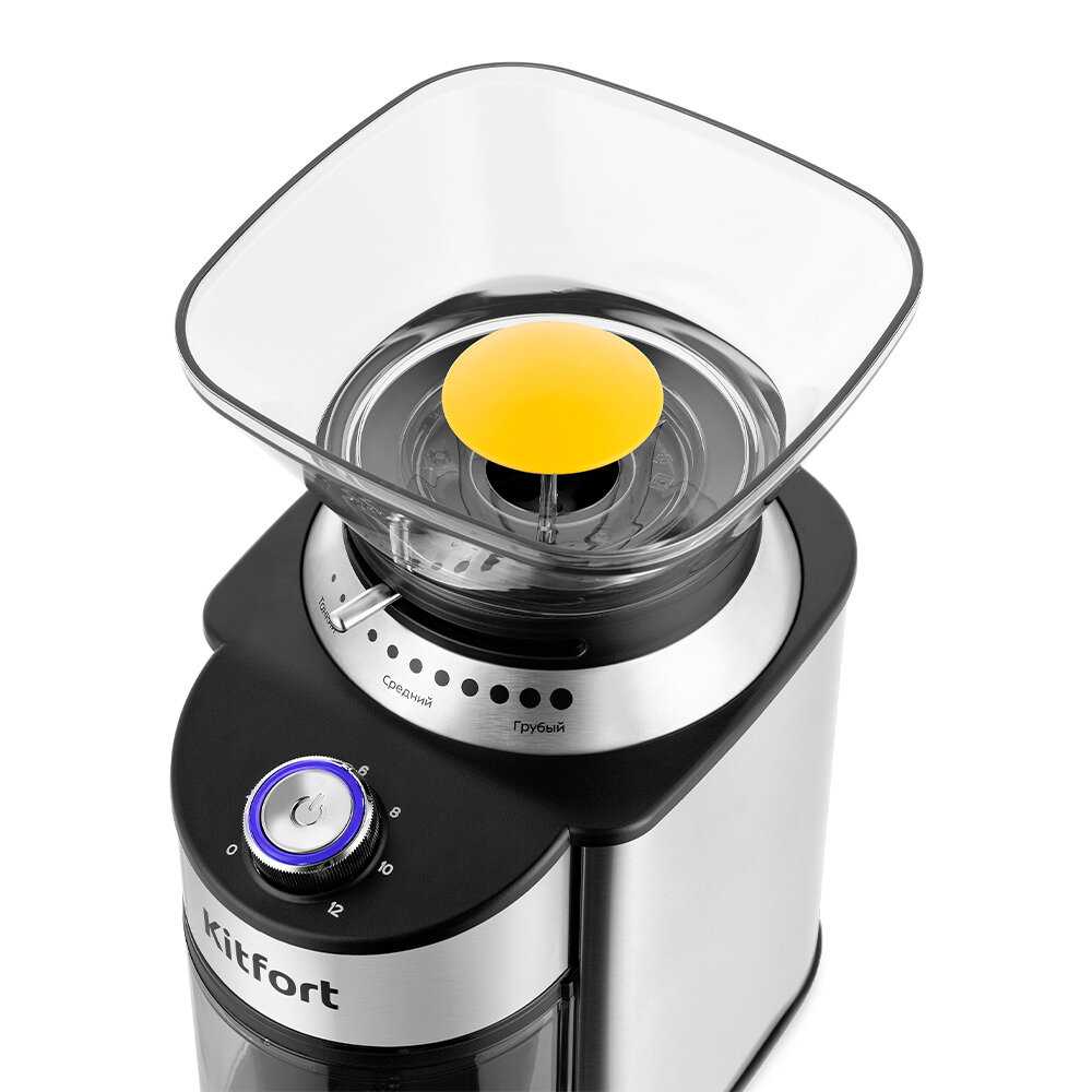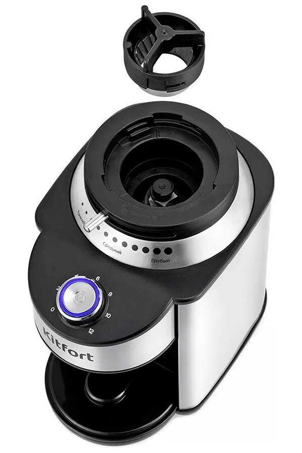 - Возможность выбора степени помола: имеется регулятор степени измельчения зерна, что позволяет экспериментировать с разными сортами и способами приготовления кофе.