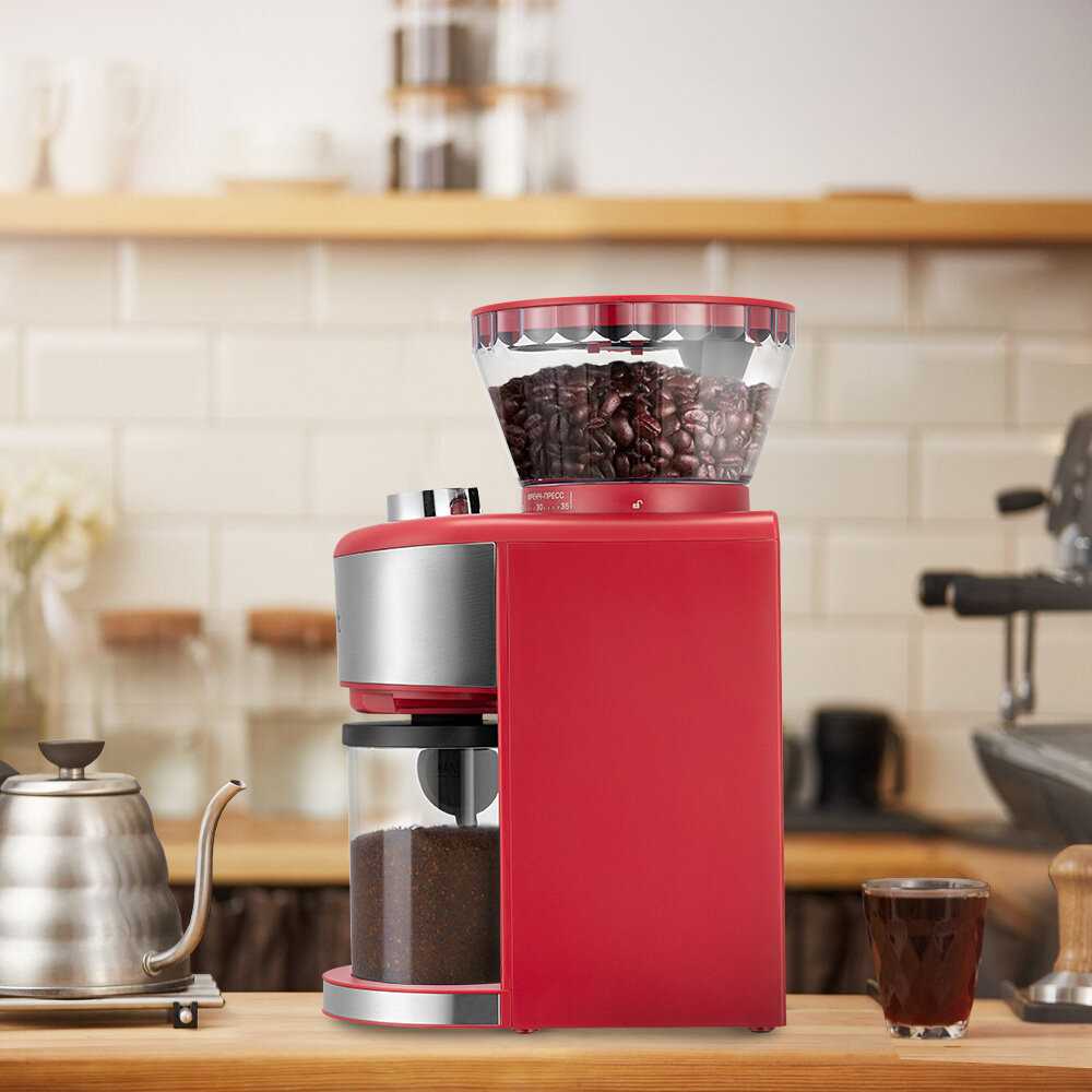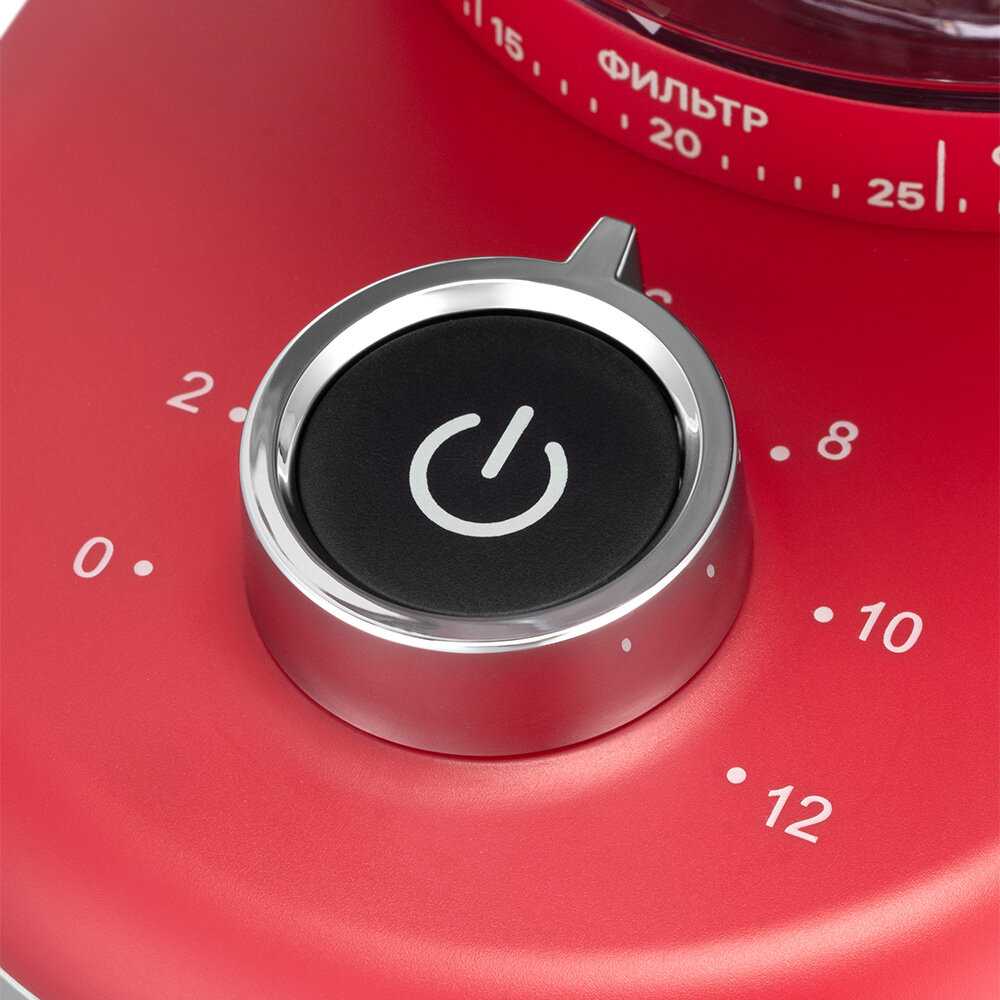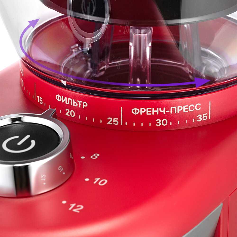 - + Красная! в цвет тостера. Шумит меньше, чем предыдущая с чашкой. Компактная. Большой диапазон помола. Удобная кнопка пуск.