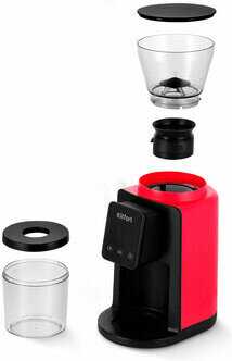 - + Работает не напрягаясь даже на очень мелком помоле, очень быстро намолол весь объём контейнера, намного тише, чем моя кофемашина. Цвет весёлый, брал по акции, так что малиновый тоже хорошо)