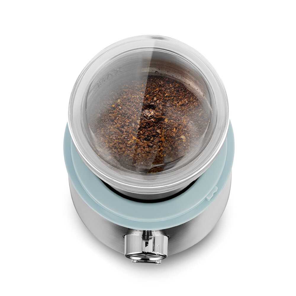 - + Емкая кофемолка. Помимо кофе, можно перемалывать специи. За счет формы чашы (в которой перемалывается кофе) и из-за наличия у нее отдельной крышки, кофе не рассыпается при открытии. Удобно чистить, так как чаша съемная. Достатно плотно закручивается верхняя крышка, это надо понимать при первом включении, так как пока крышка не будет плотно закрыта, кофемолка не включится.