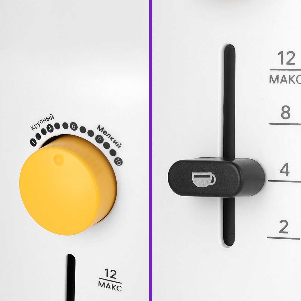 Съёмная чаша, регулировка степени помола и порций, автоматическое выключение