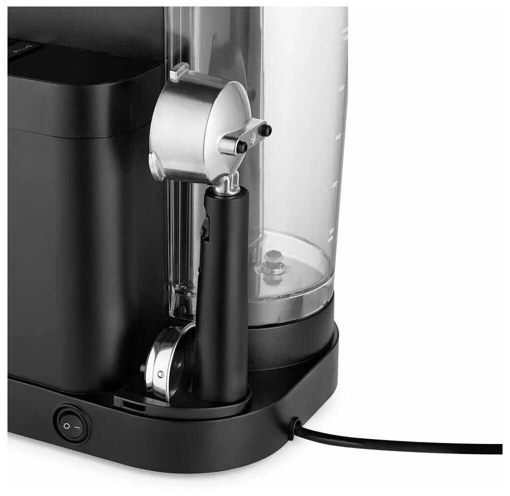 - Резервуар для воды (1 л) рассчитан на 4-5 порций эспрессо, что неудобно для семьи из 3+ человек.