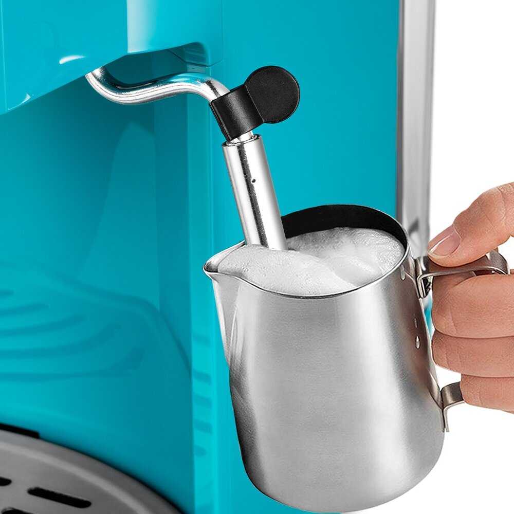 Капучинатор отлично взбивает молоко в плотную пенку с первого раза при использовании холодного жирного молока. Пользователи сравнивают пенку с ресторанной, лучше, чем на профессиональных машинах, подходит для капучино, латте, какао. Иногда требуется привычка, угол наклона стимера неудобен сначала, но адаптируются. Редко подтекает вода при переключении режимов. -