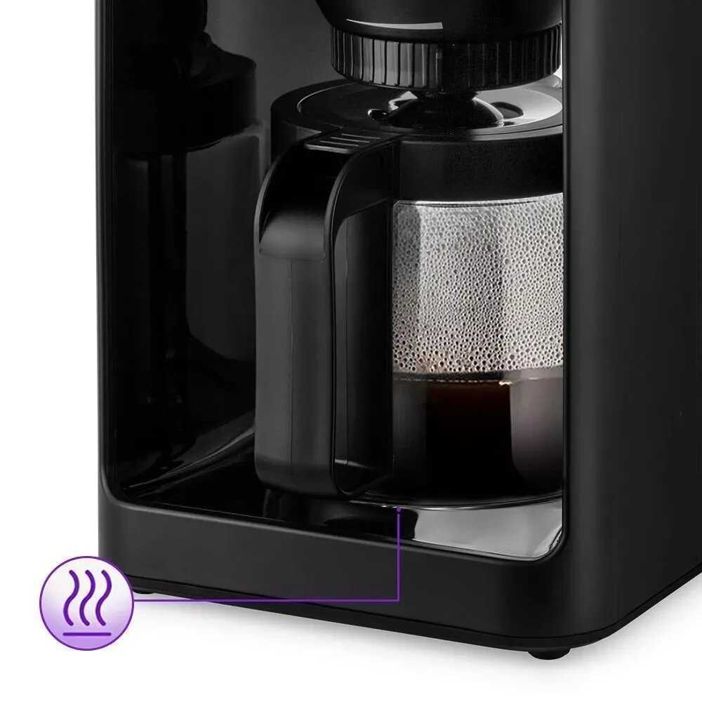 - + Кофеварка отличная, стильная. Брала на работу, чтобы варить кофе 1-2 раза в день для 2-3 человек. Резервуар для воды расположен сверху, очень удобно заливать воду. Оптимальная длина шнура. Достаточно при условии, что кофеварка стоит на тумбочке.