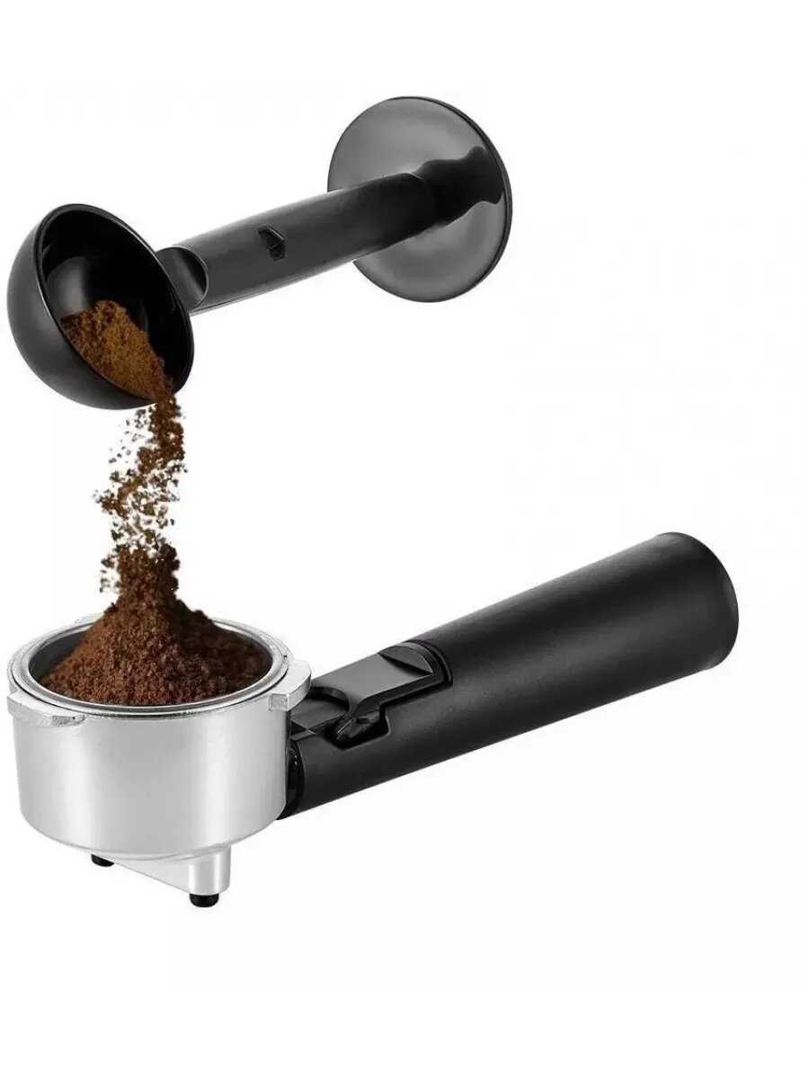 - Рожок (холдер) из тяжелого металла обеспечивает равномерное прессование кофейной таблетки.