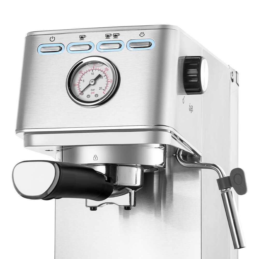 При правильном помоле и дозировке кофеварка стабильно готовит насыщенный напиток с выраженным ароматом и плотной крема-пенкой, сравнимый с сетями кофеен. Некоторые пользователи первые 1-2 недели экспериментируют с помолом (оптимален средний или крупный) и количеством кофе для достижения идеального баланса. Встроенный манометр помогает контролировать давление (15-20 бар), что напрямую влияет на экстракцию и вкус. -