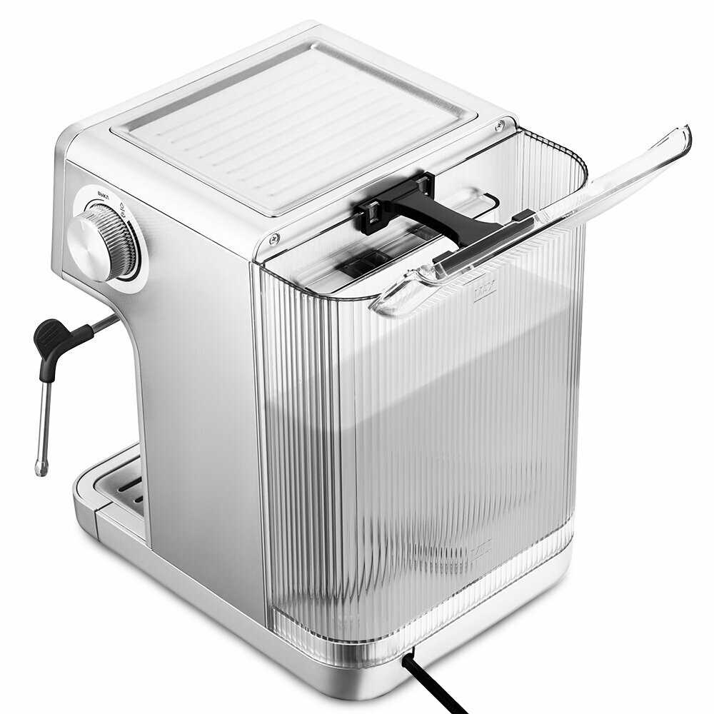 Ее внешний вид – сама элегантность: изящная и стильная, она станет украшением любой кухни. Мы были приятно удивлены ее компактными размерами – она легко впишется даже в самое скромное пространство. Легкая и изящная, она не займет много места, а ее вес с водой едва достигает 5 кг.