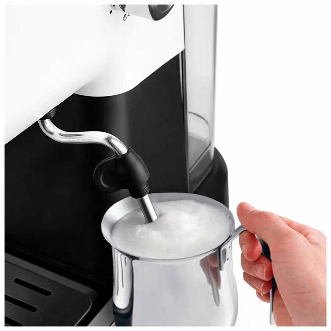 - Мощная подача пара легко взбивает молоко в плотную, однородную пену для капучино и латте, что подтверждается пользователями.